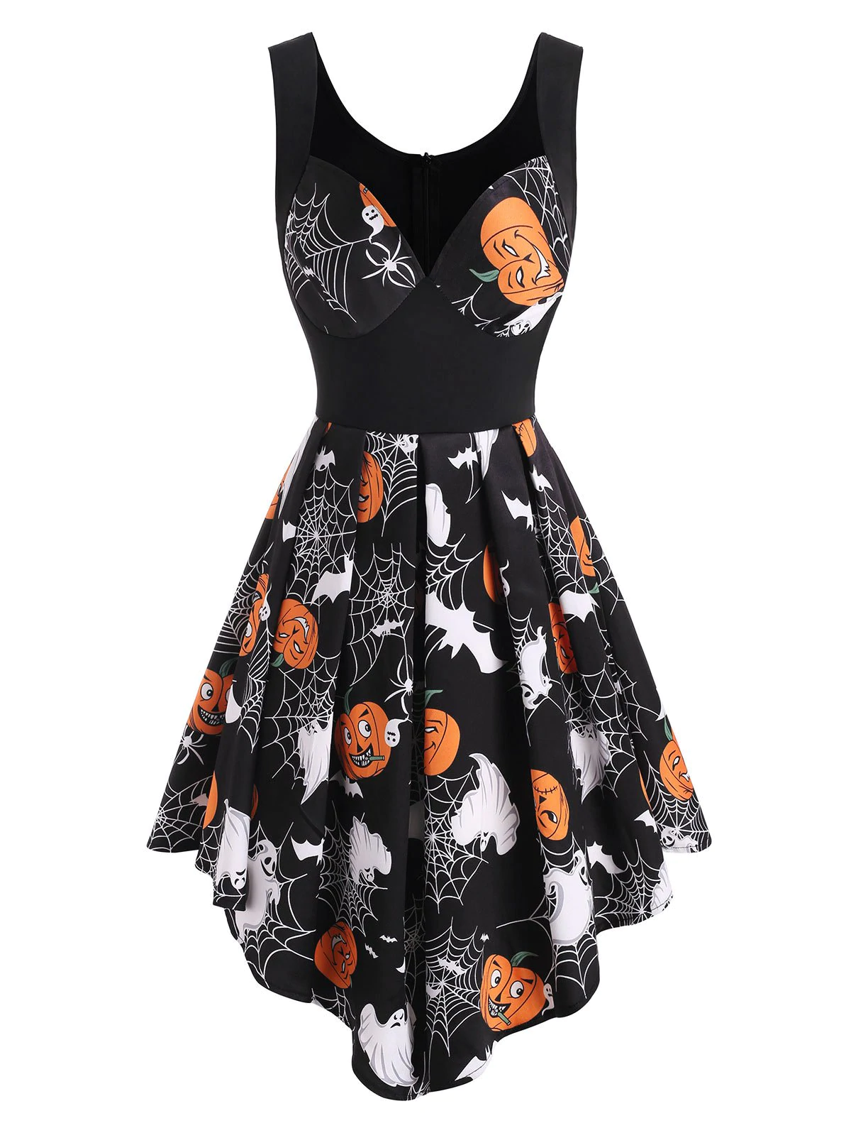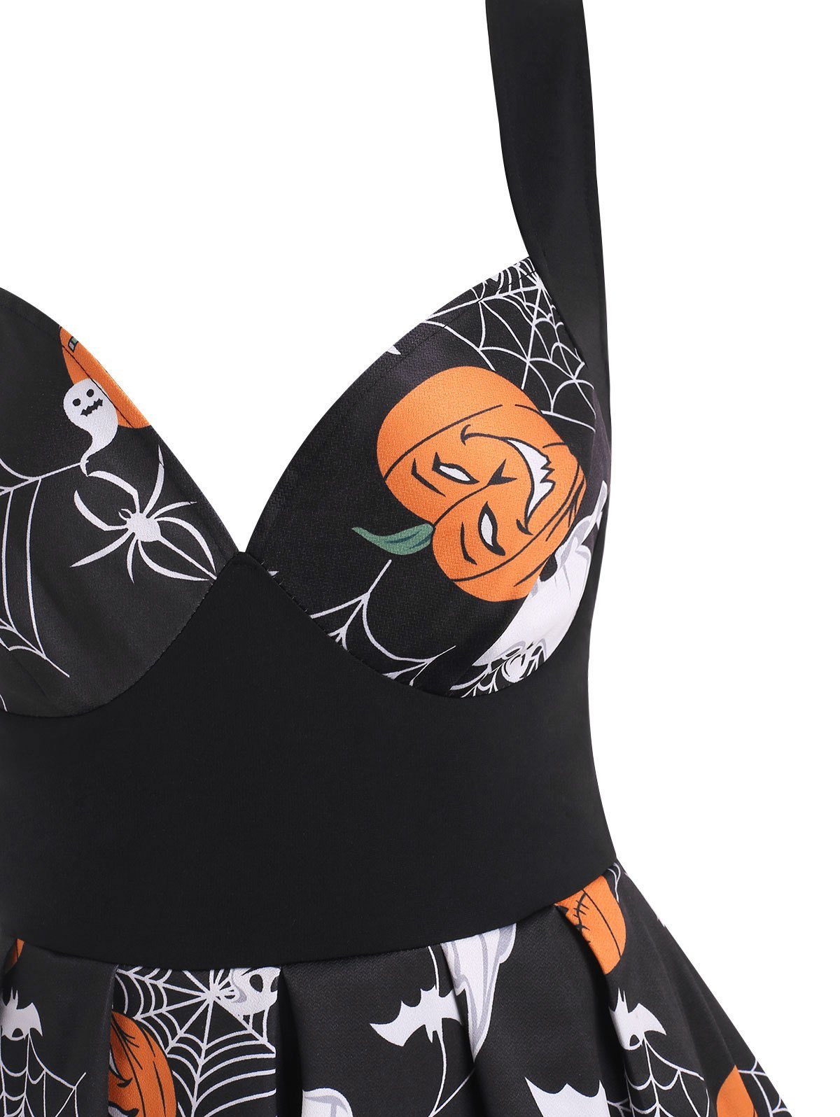 Halloween Pumpkin Spider Web Print Pin Up Dress
