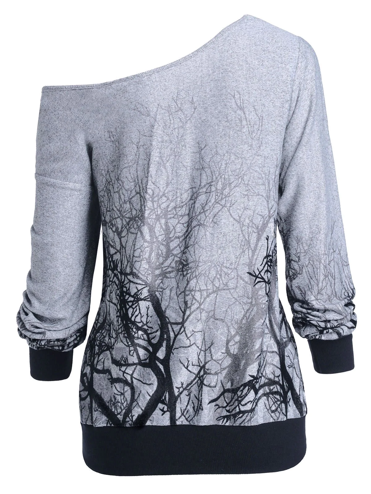 Halloween Skew Neck 3D Tree Print Sweatshirt