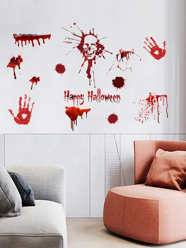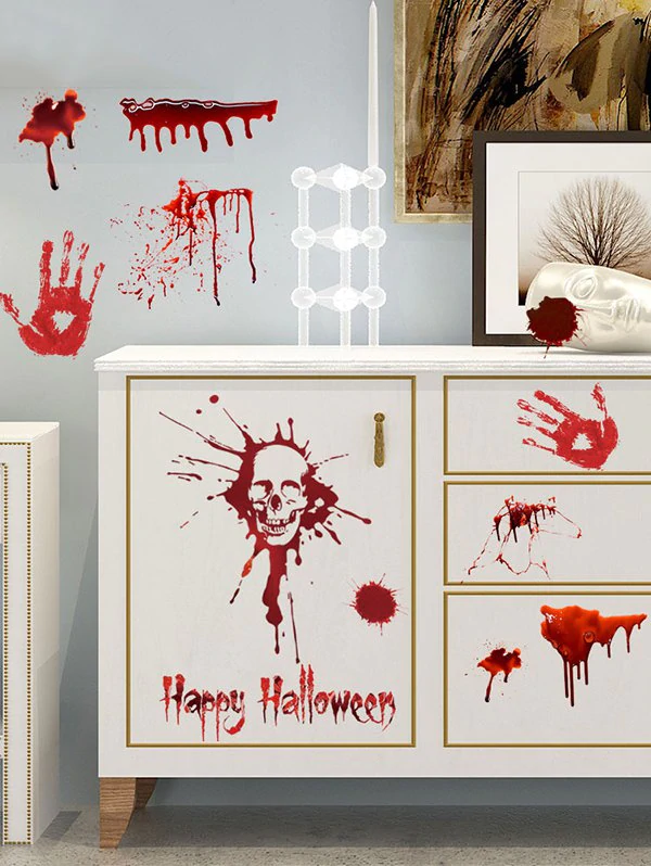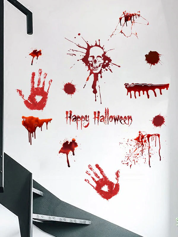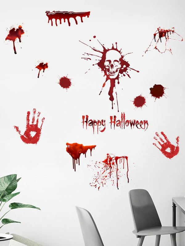 Halloween Skull Blood Handprint Pattern Window Wall Stickers