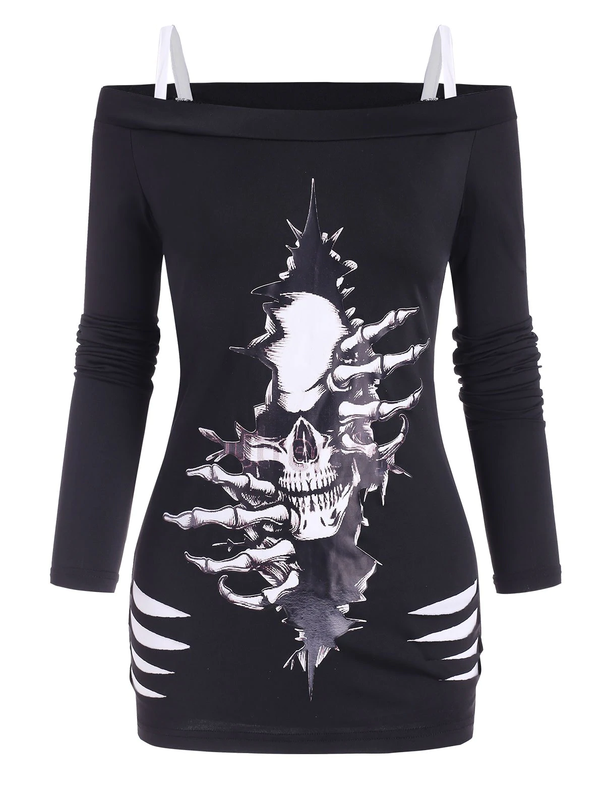 Halloween Skull Cold Shoulder Cutout Combo Top