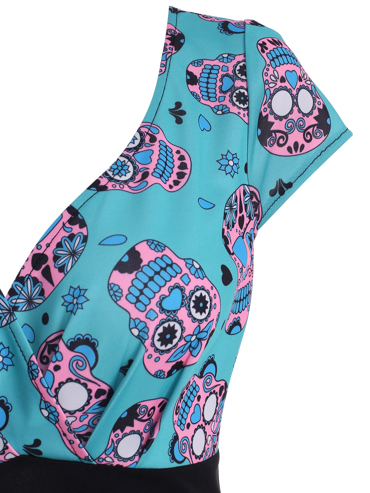 1 review for Halloween Skull Flower Cap Sleeve Surplice Dress