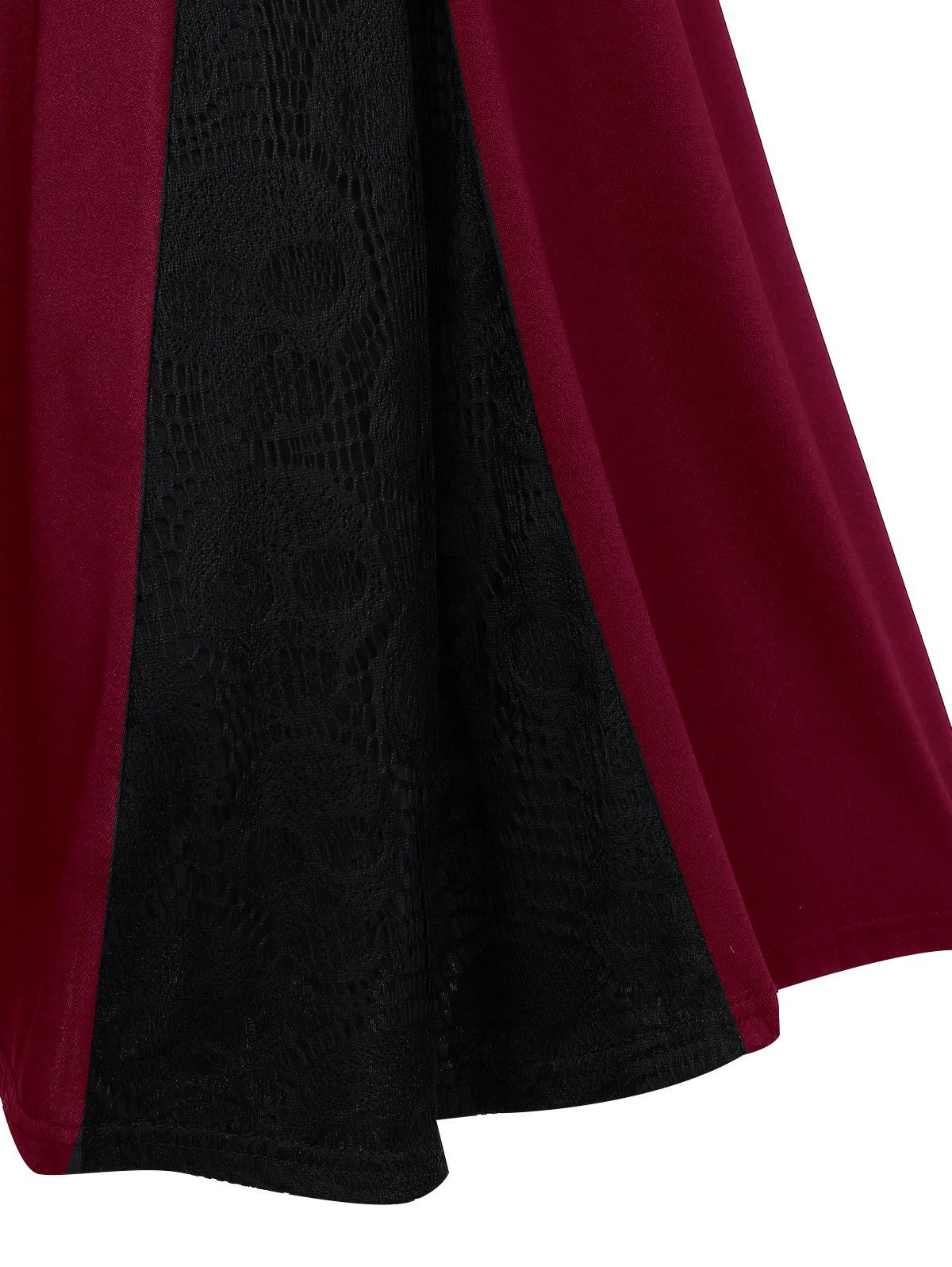 Halloween Skull Lace Insert Mock Button Bowknot Dress