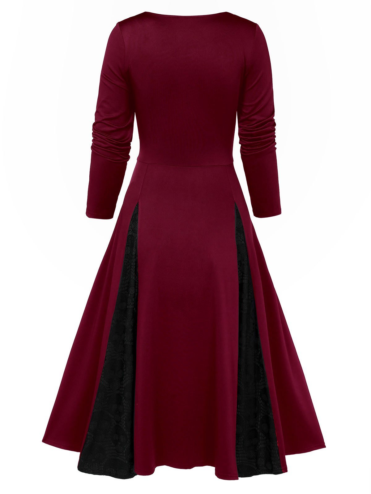 Plus Size Lace Panel Dip Hem Midi High Rise Dress
