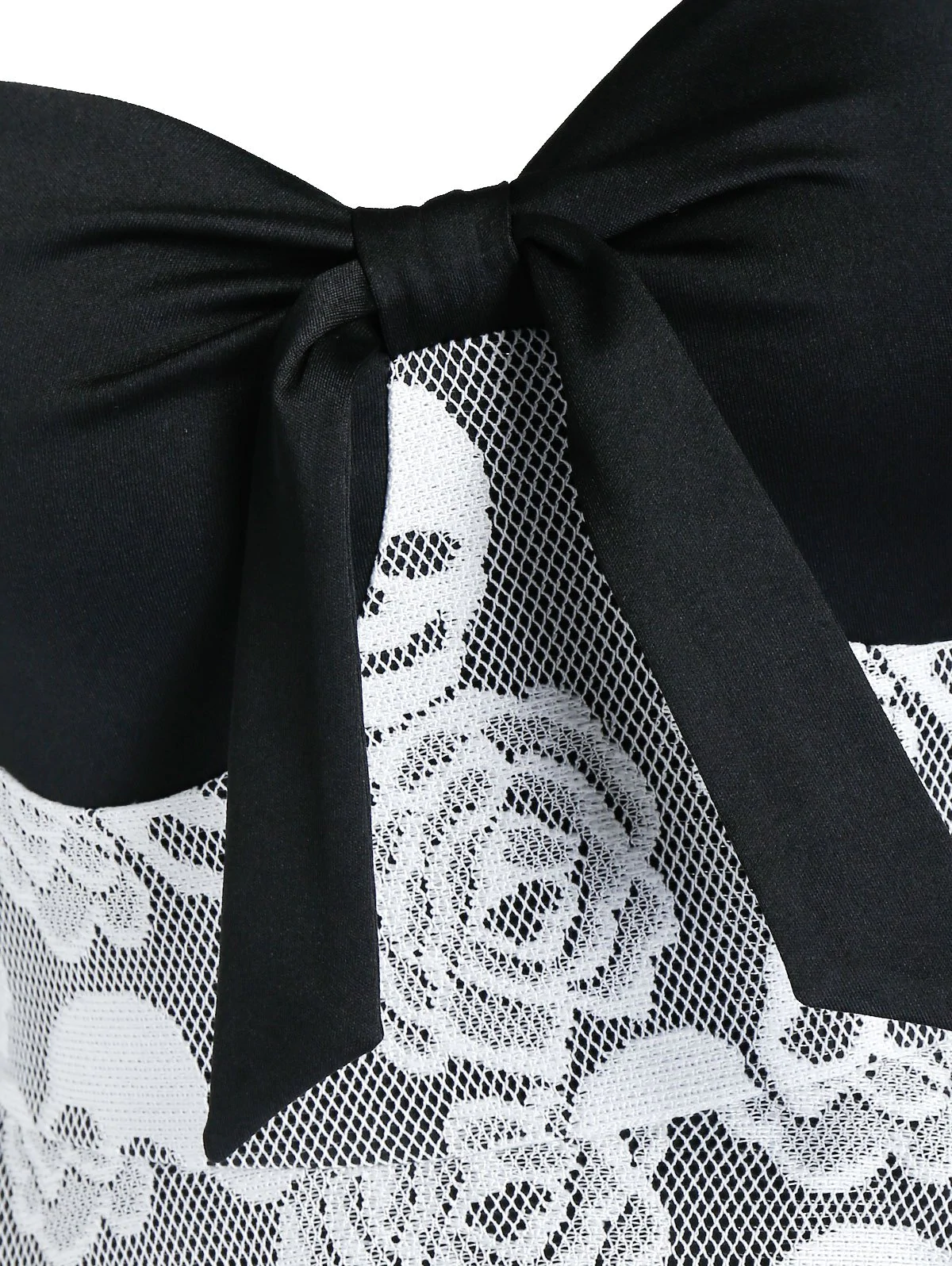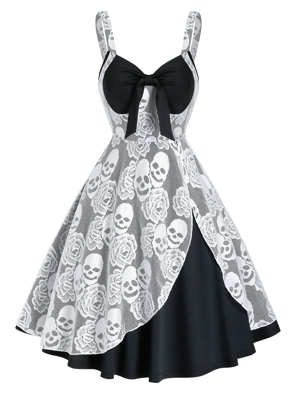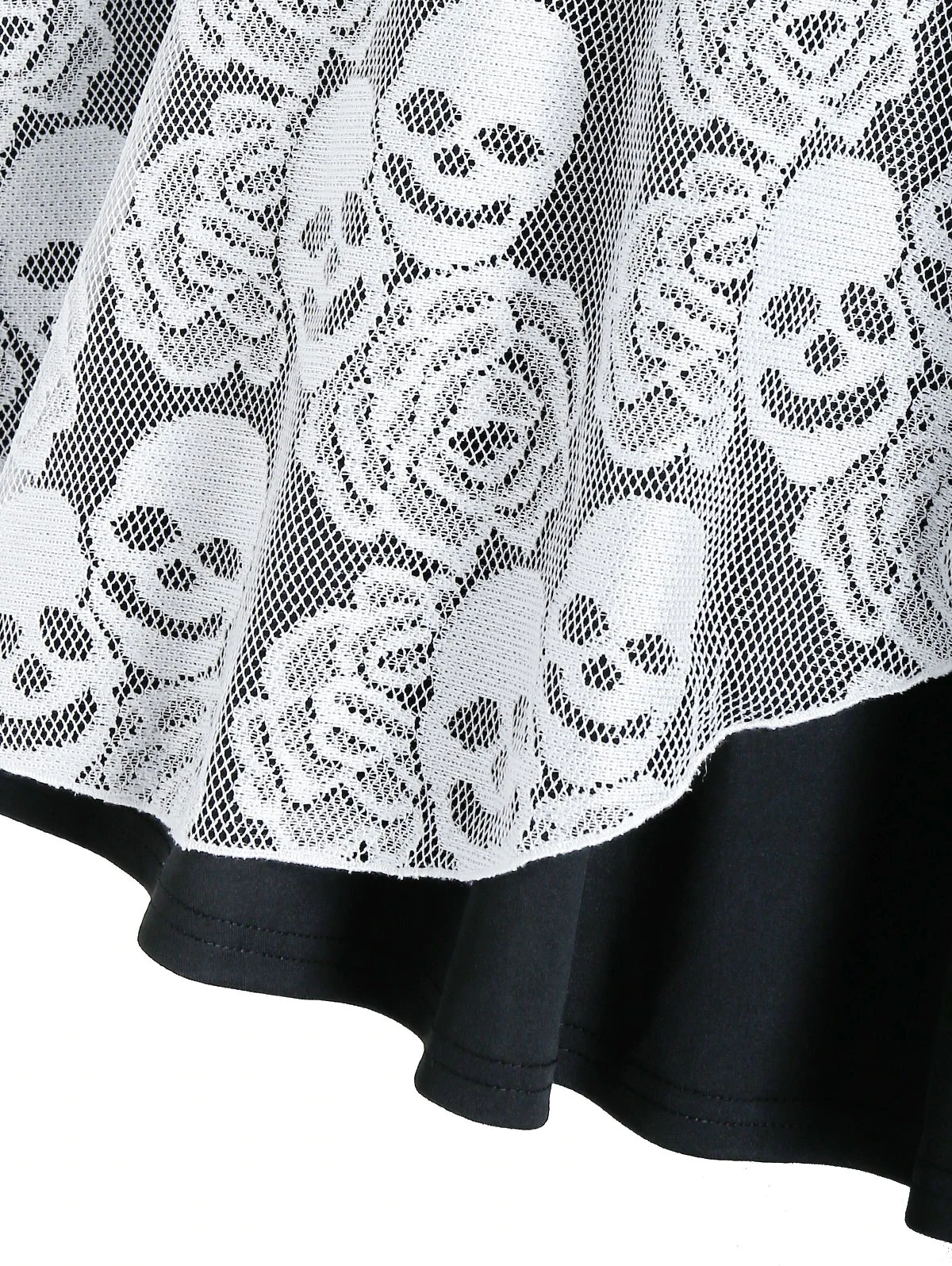 Halloween Skull Lace Insert Sleeveless Twofer Dress