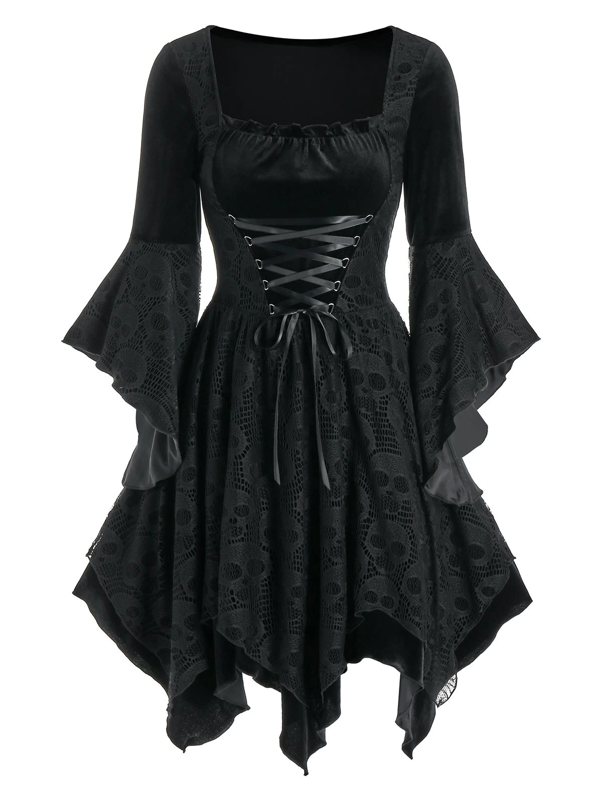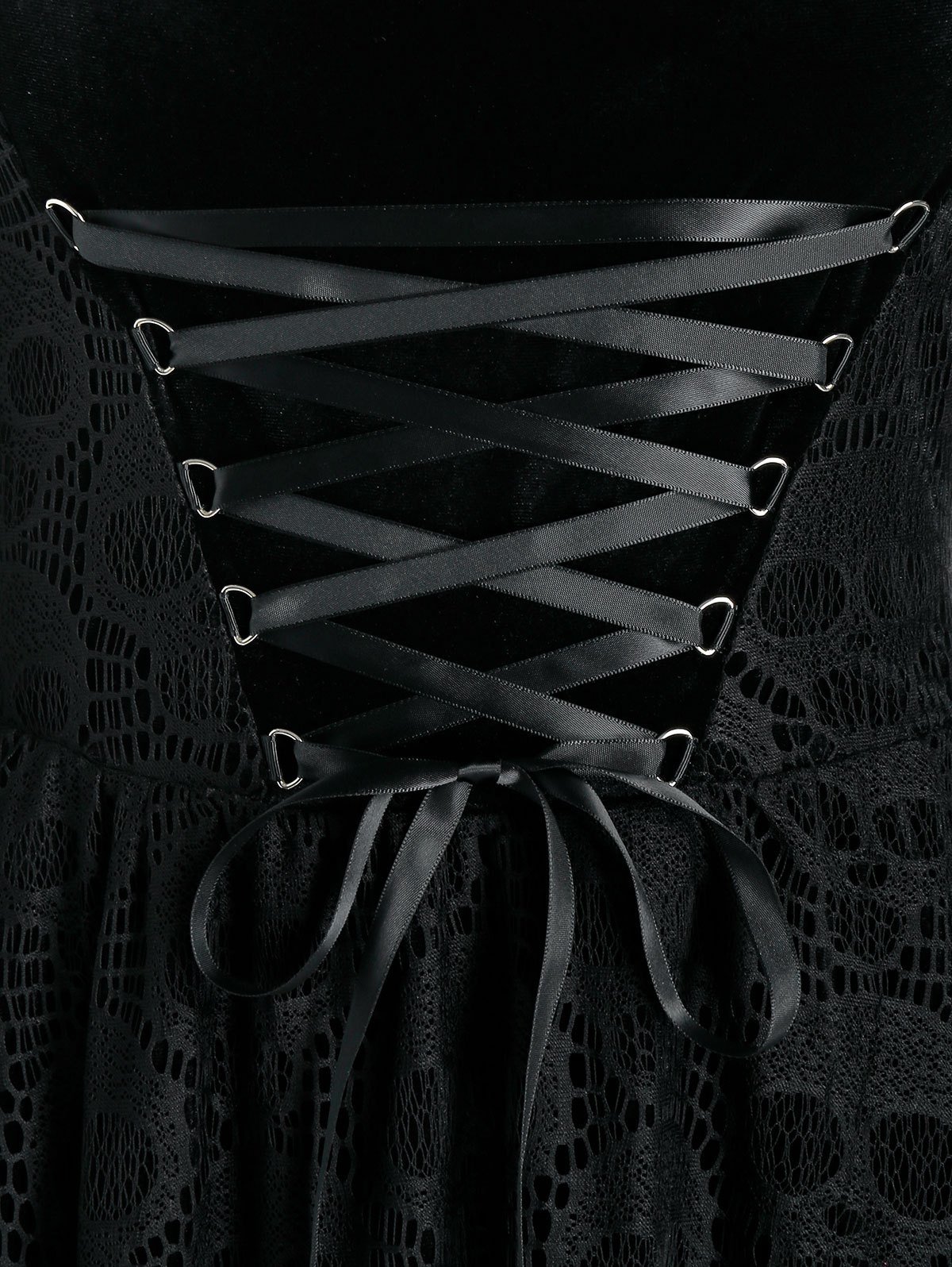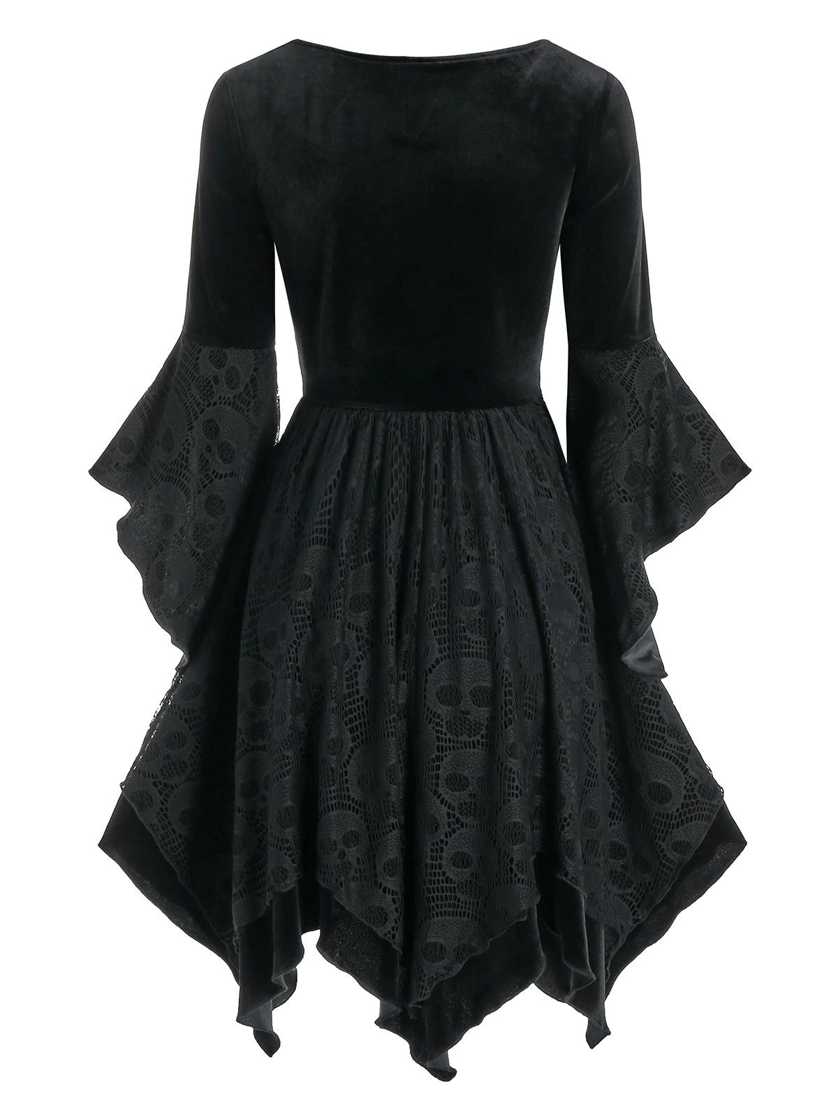 Halloween Skull Lace Insert Velvet Handkerchief Dress