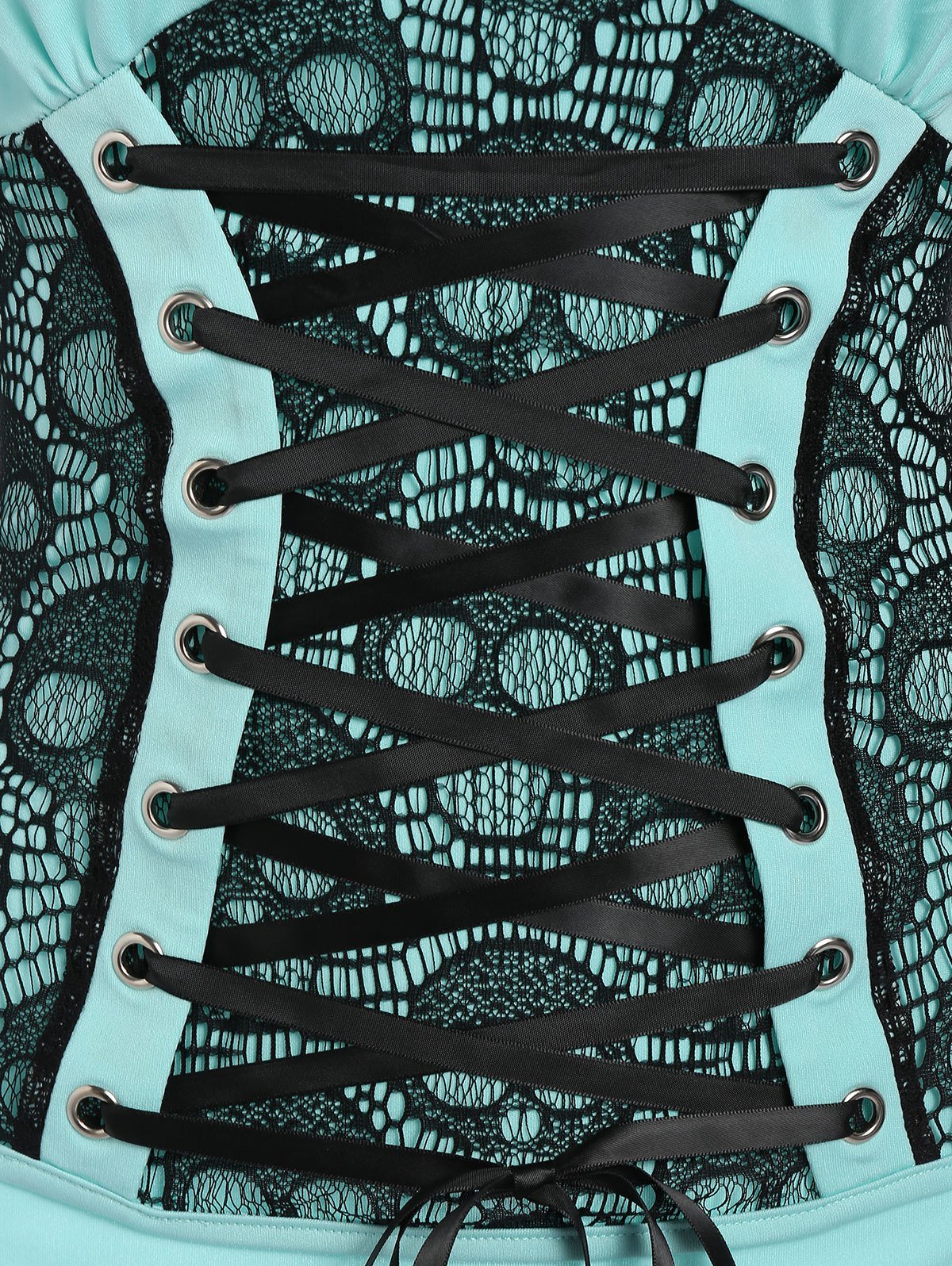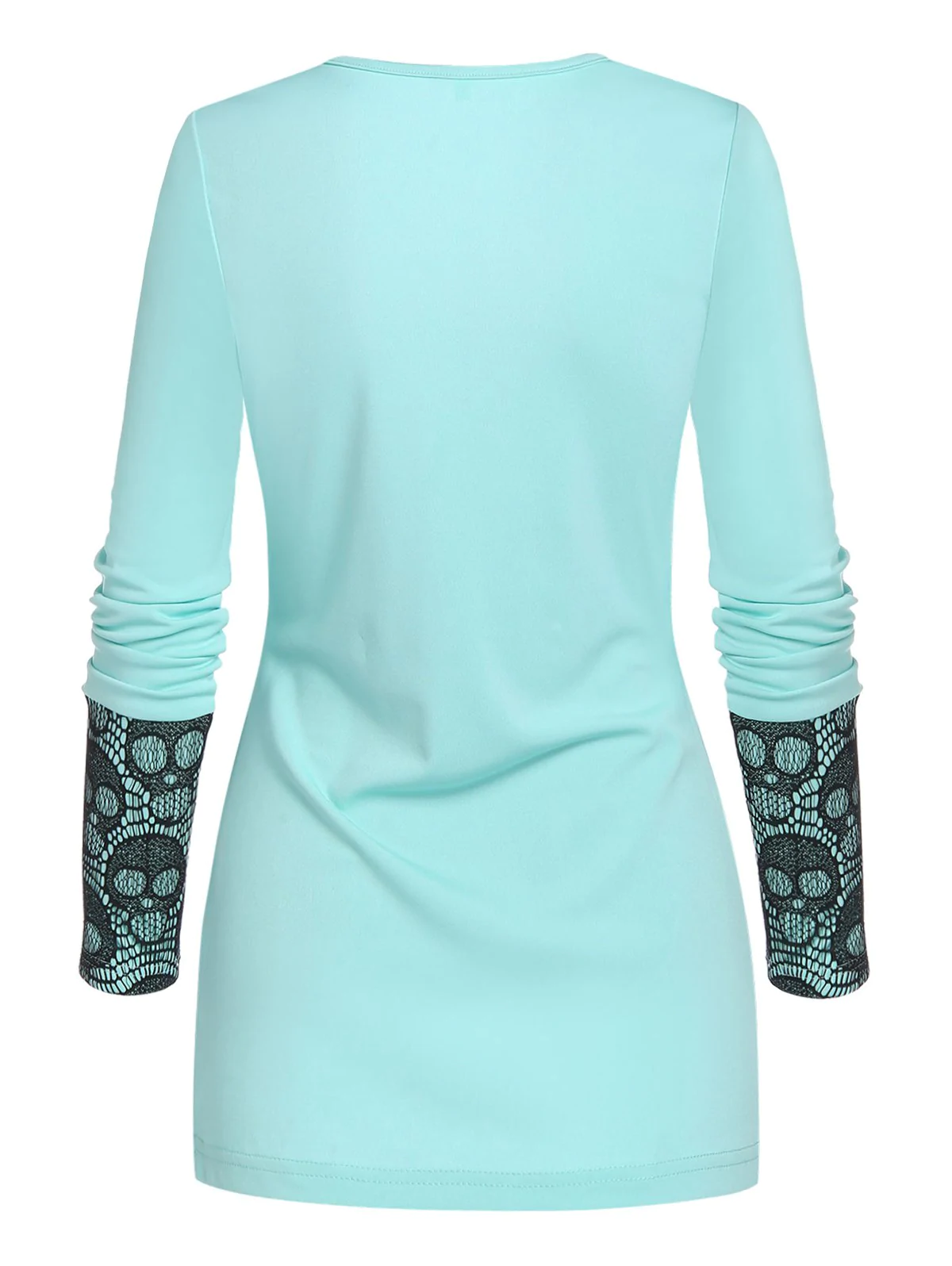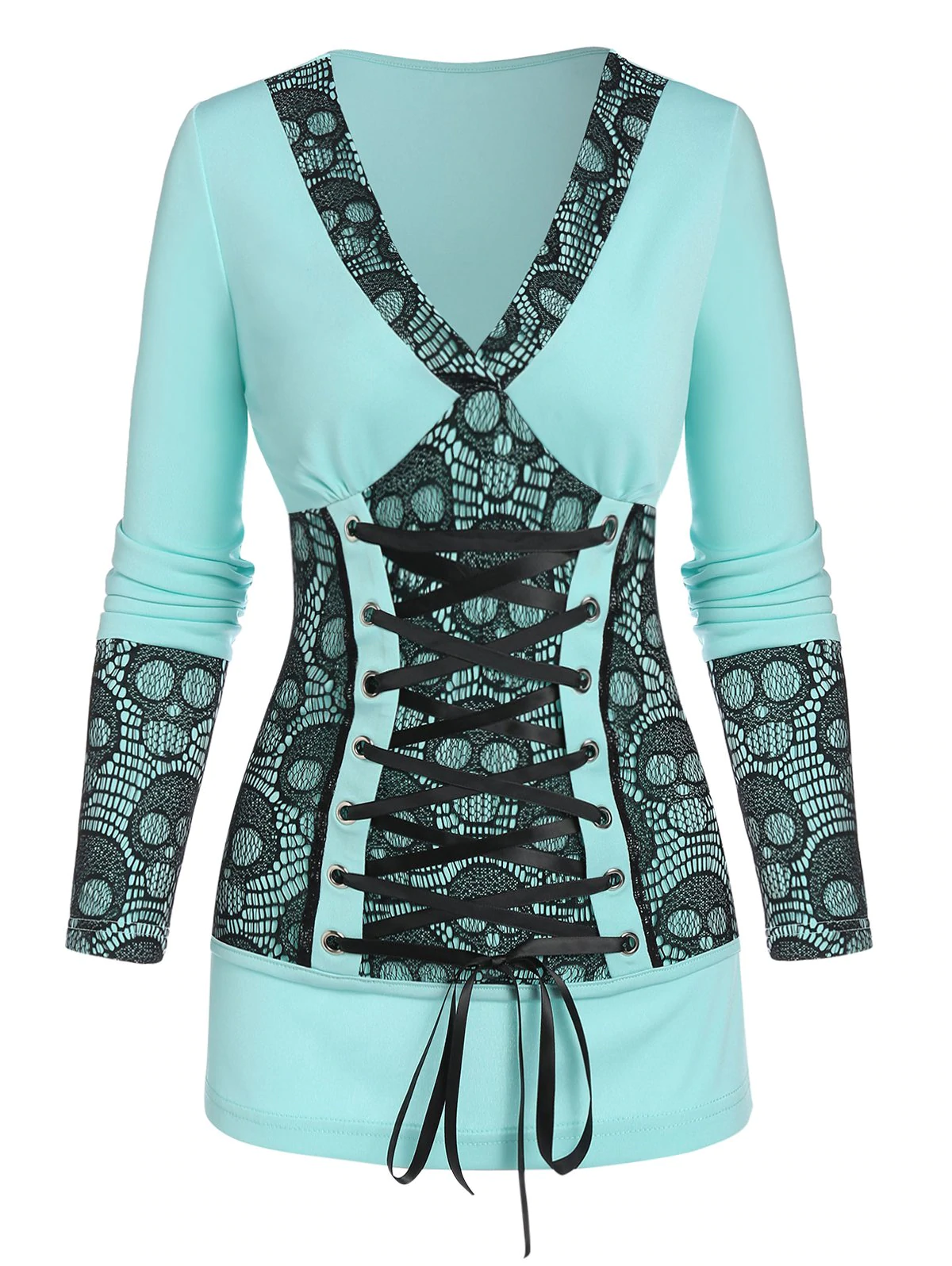 Halloween Skull Lace Panel Lace-up Long Sleeve T-shirt