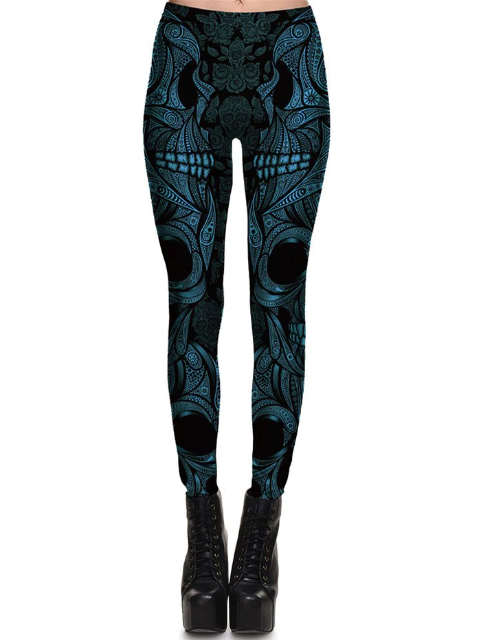Halloween Skull Pattern High Waisted Leggings
