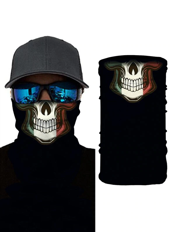 Halloween Skull Print Riding Face Mask Neck Gaiter