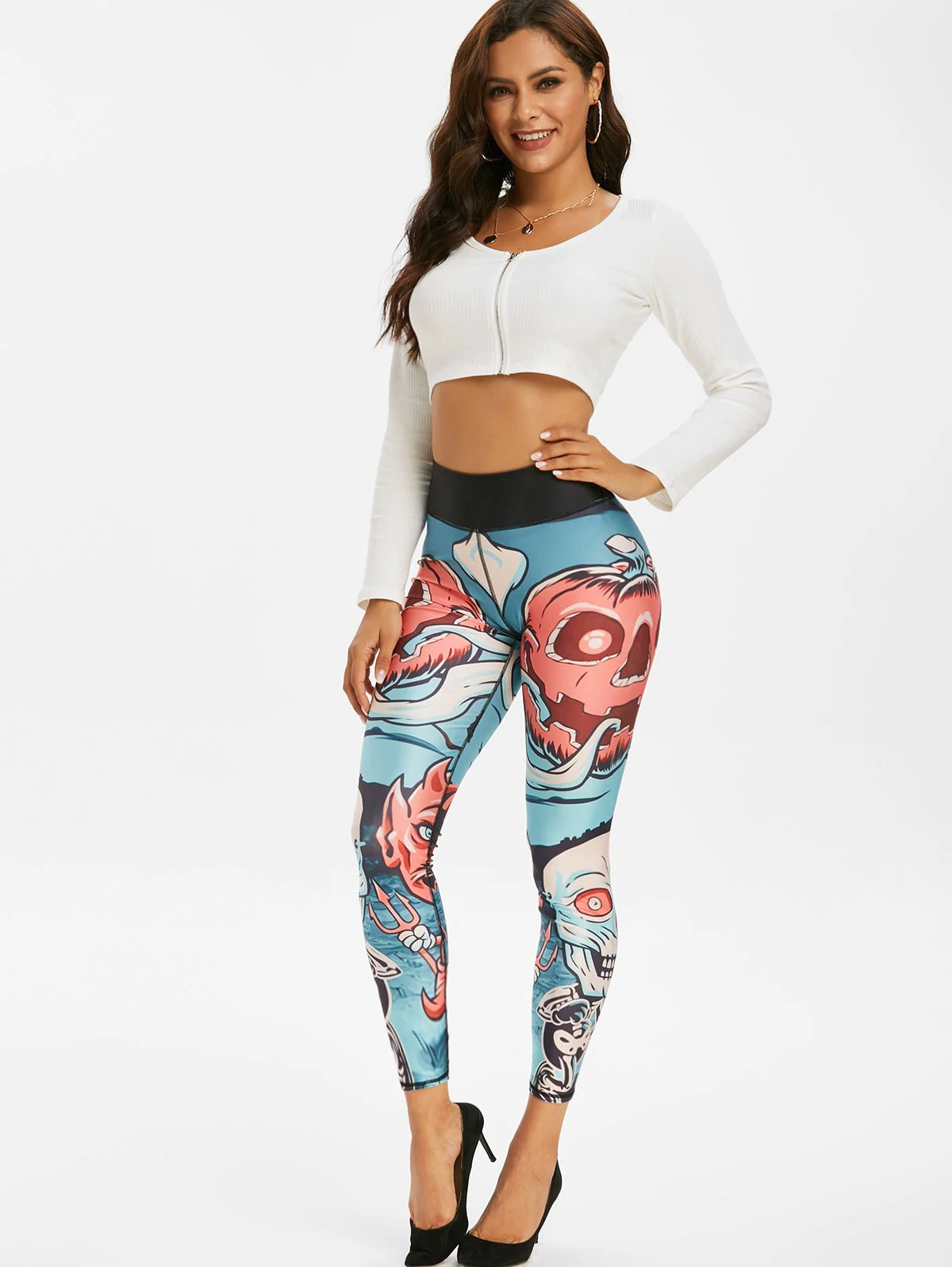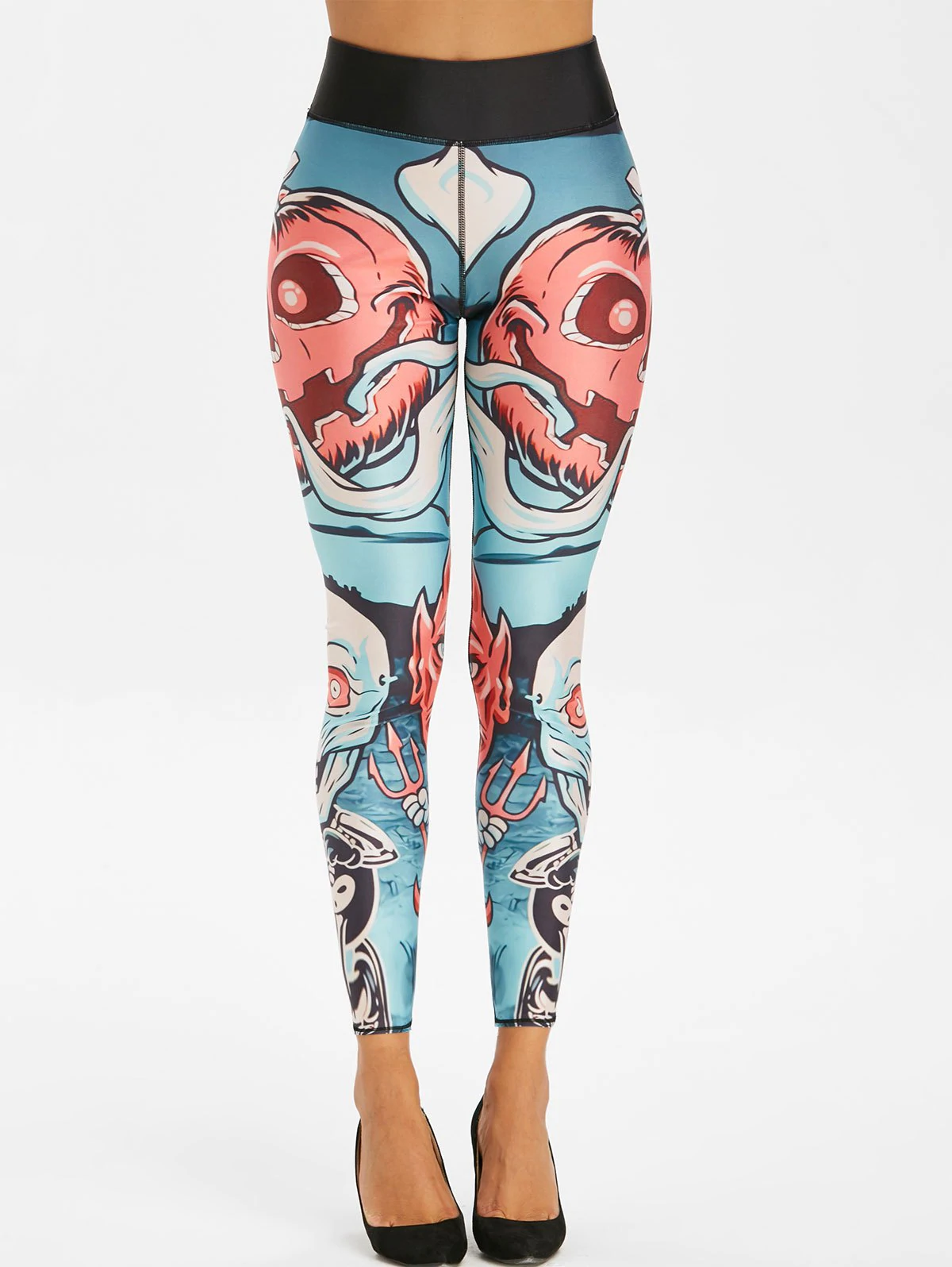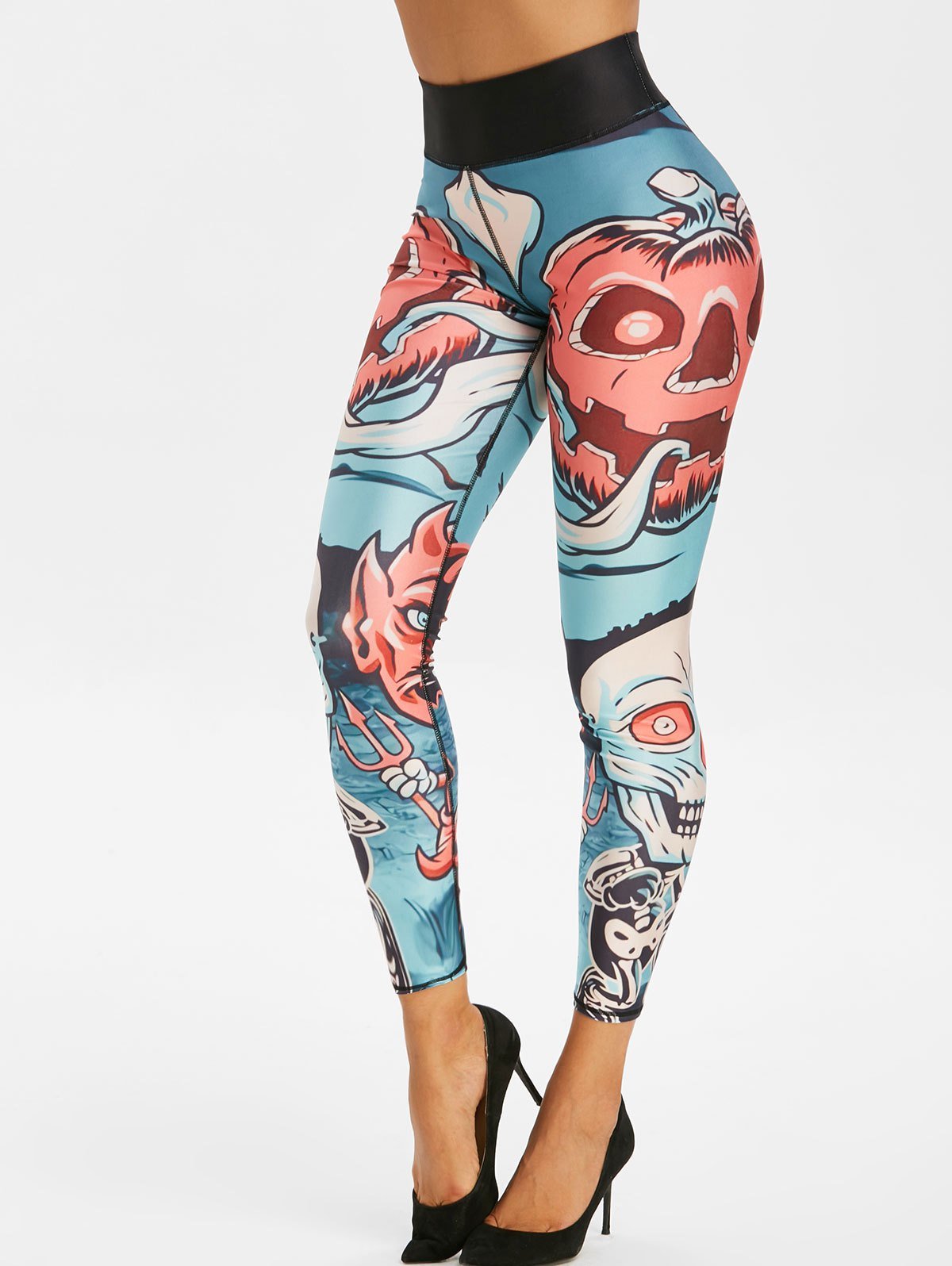 Halloween Skull Print Wide Waistband Gym Leggings