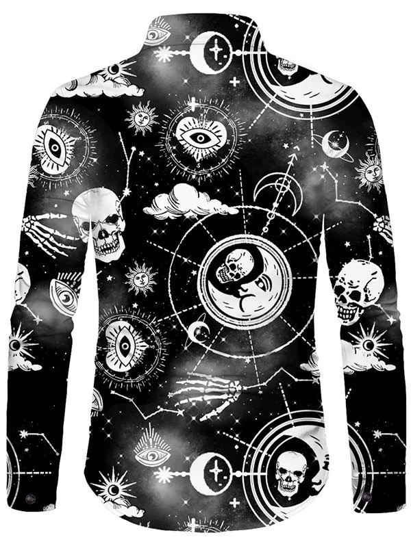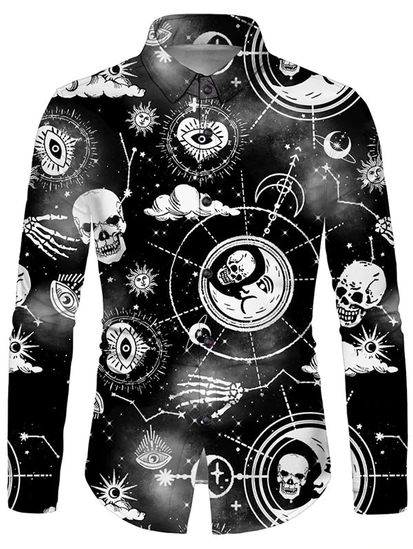 Halloween Skull Sun Moon Stars Print Button Up Shirt