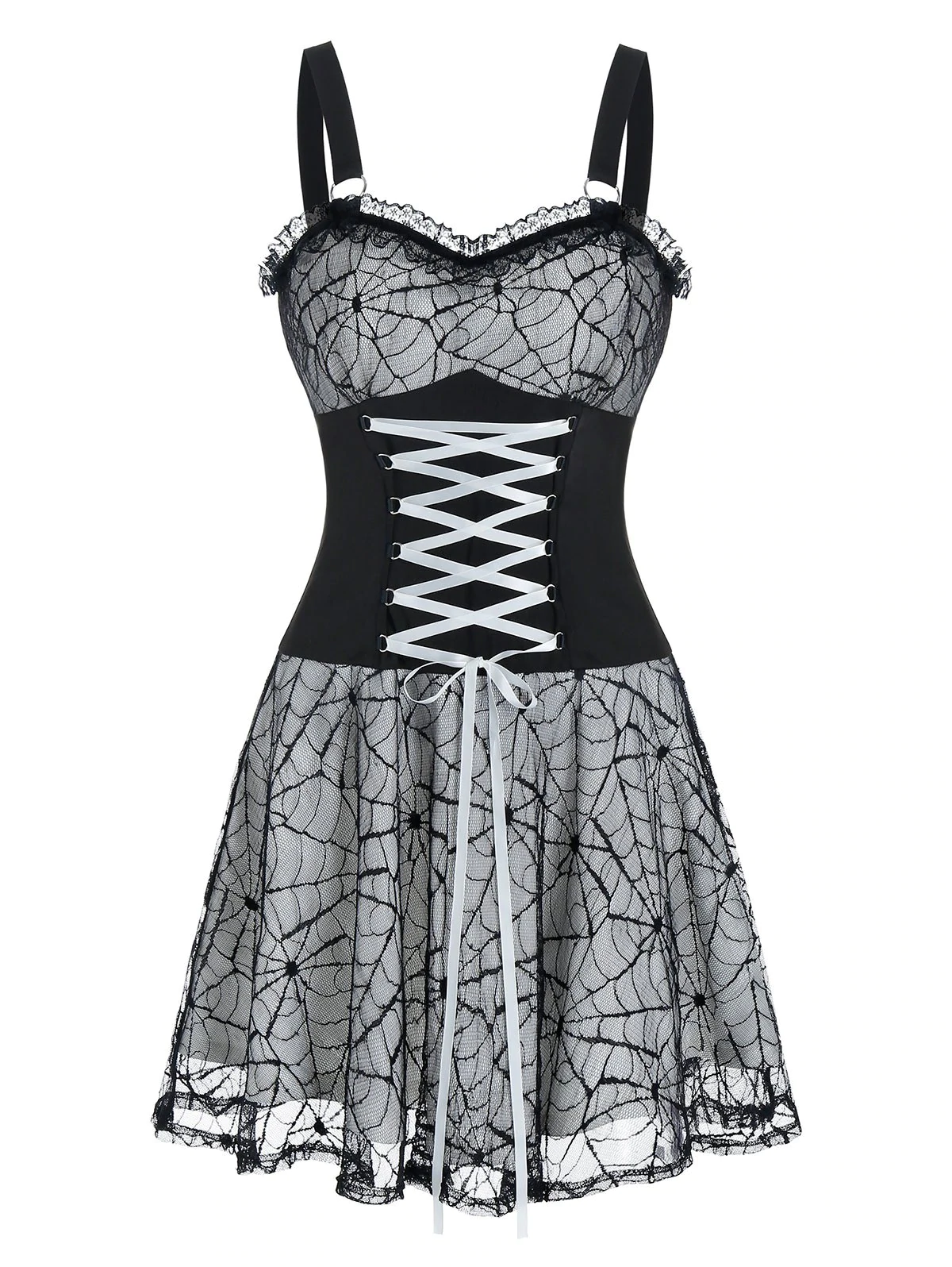 Halloween Sleeveless Lace-up Spider Web Lace Dress