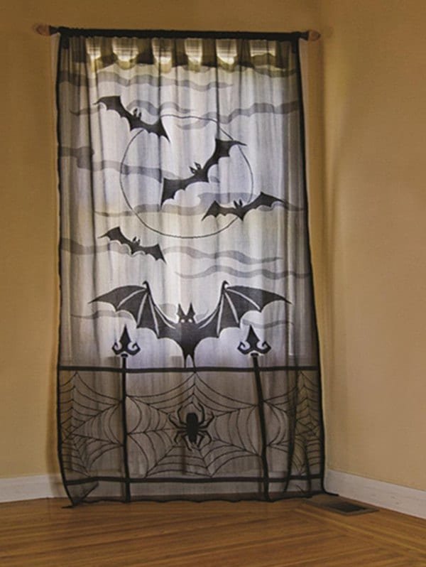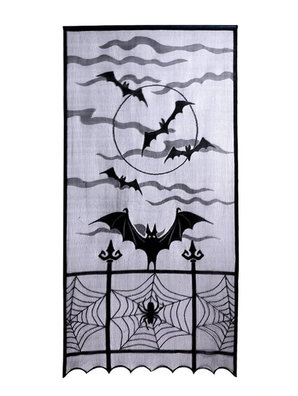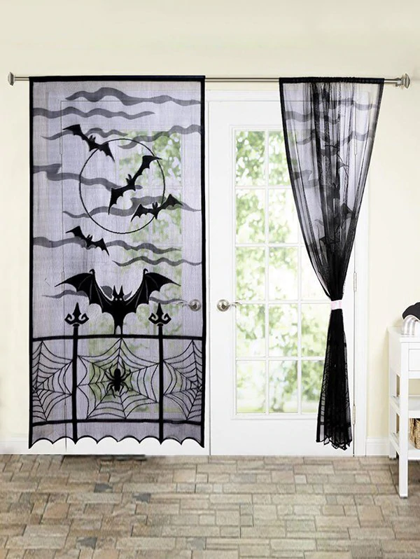Halloween Spider Web Bats Mesh Window Curtain