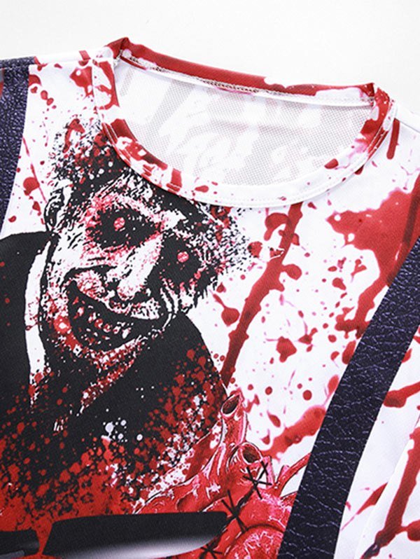Halloween Stab Heart Faux Suit Print Crew Neck Slim T Shirt