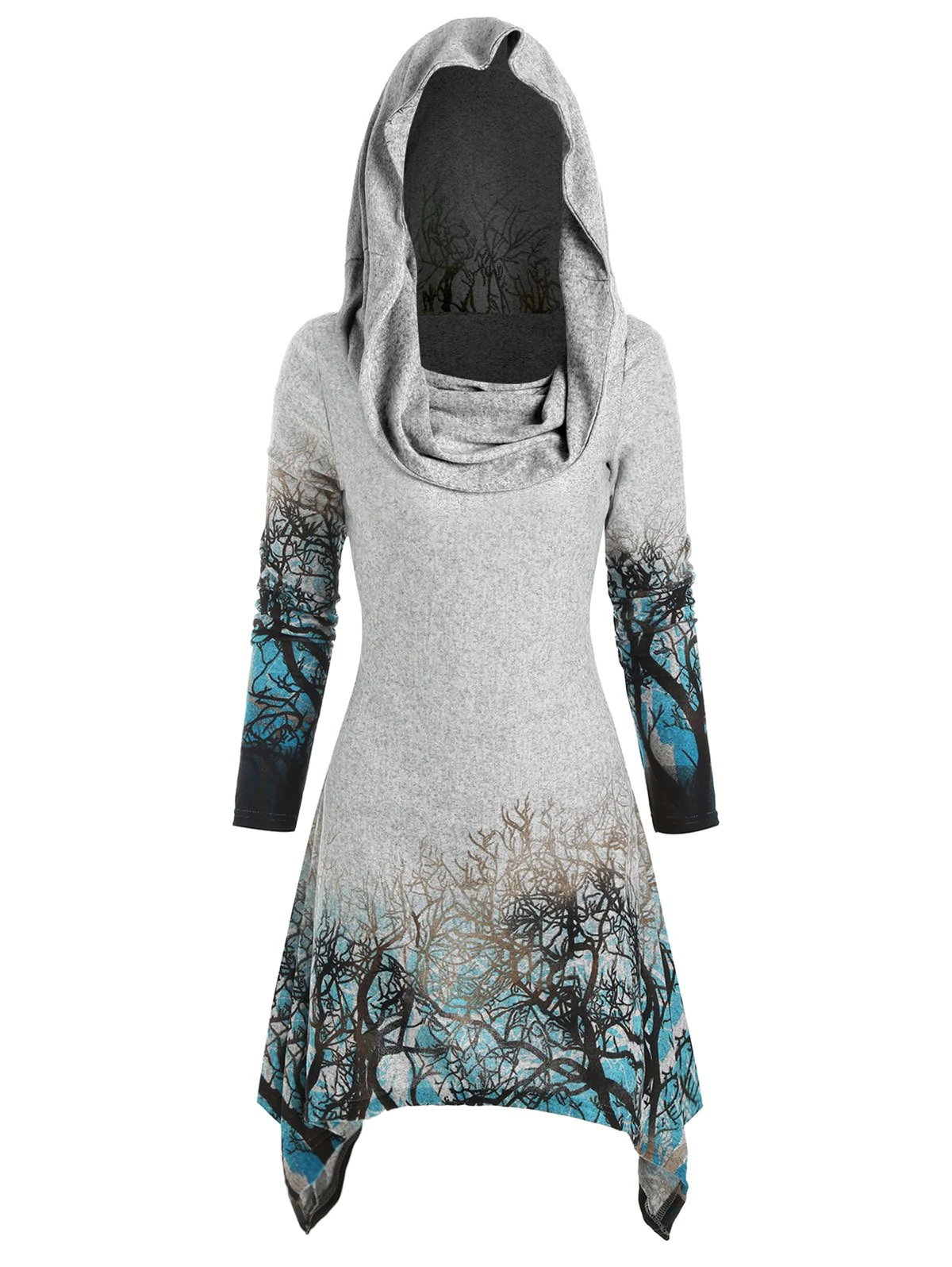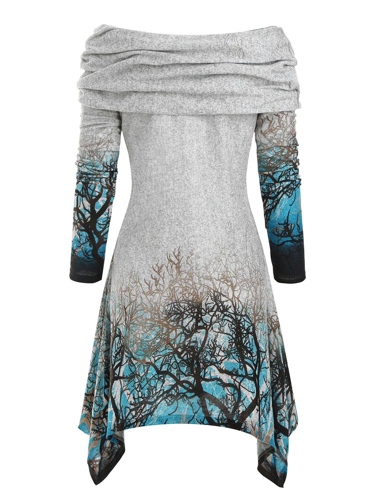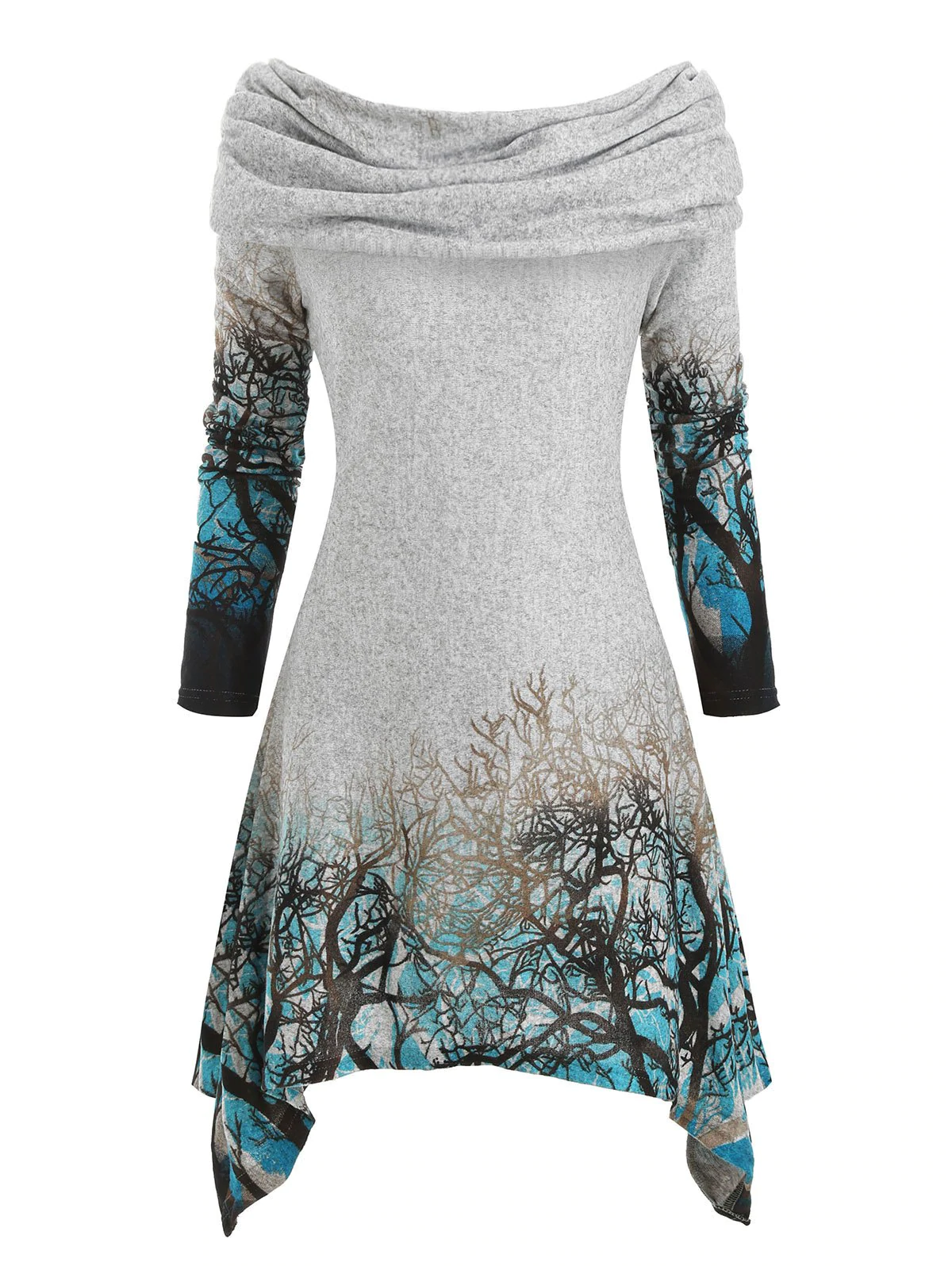 Halloween Tree Print Convertible Collar Asymmetrical Knitwear
