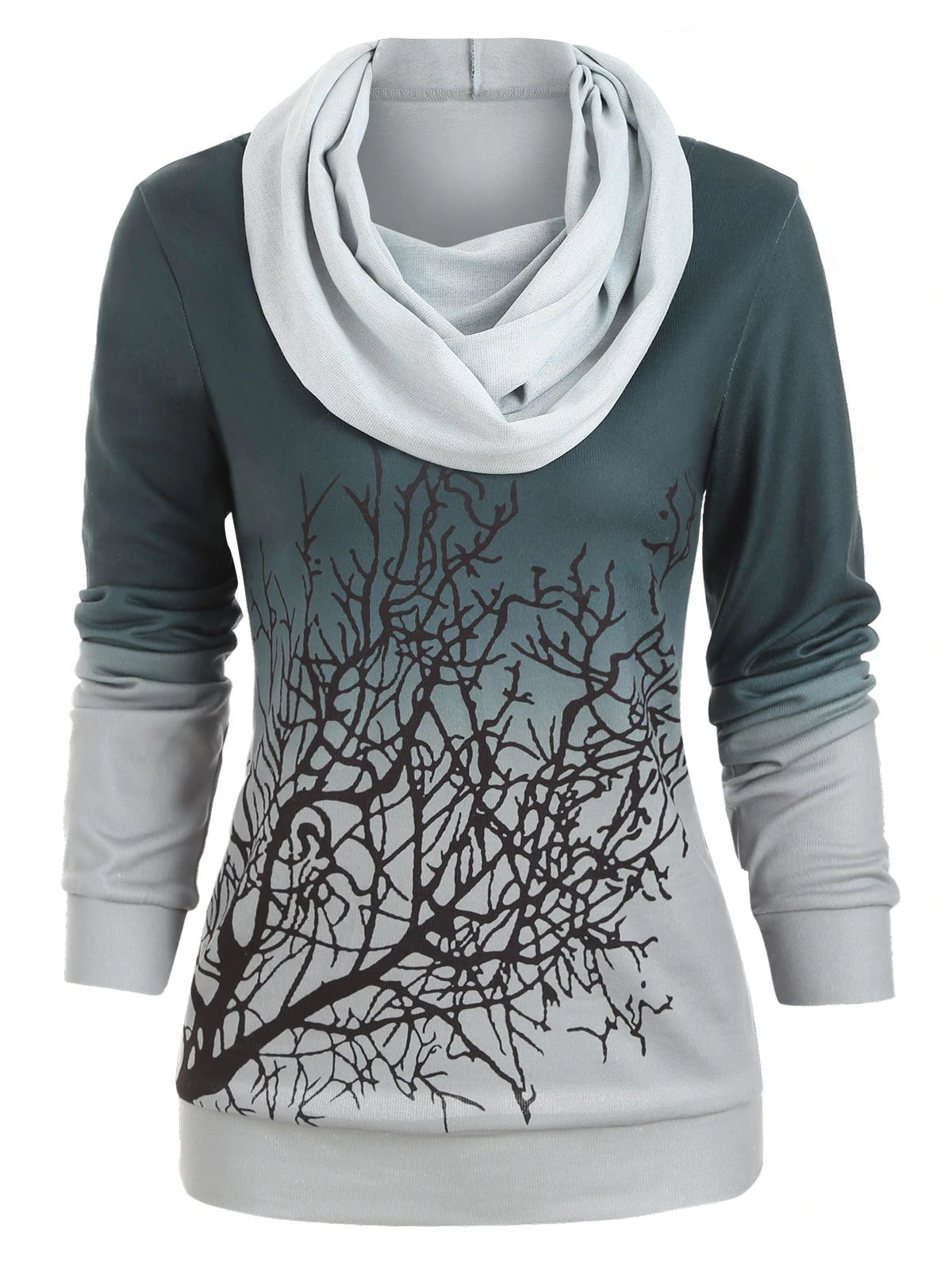 Halloween Tree Print Convertible Collar Sweatshirt