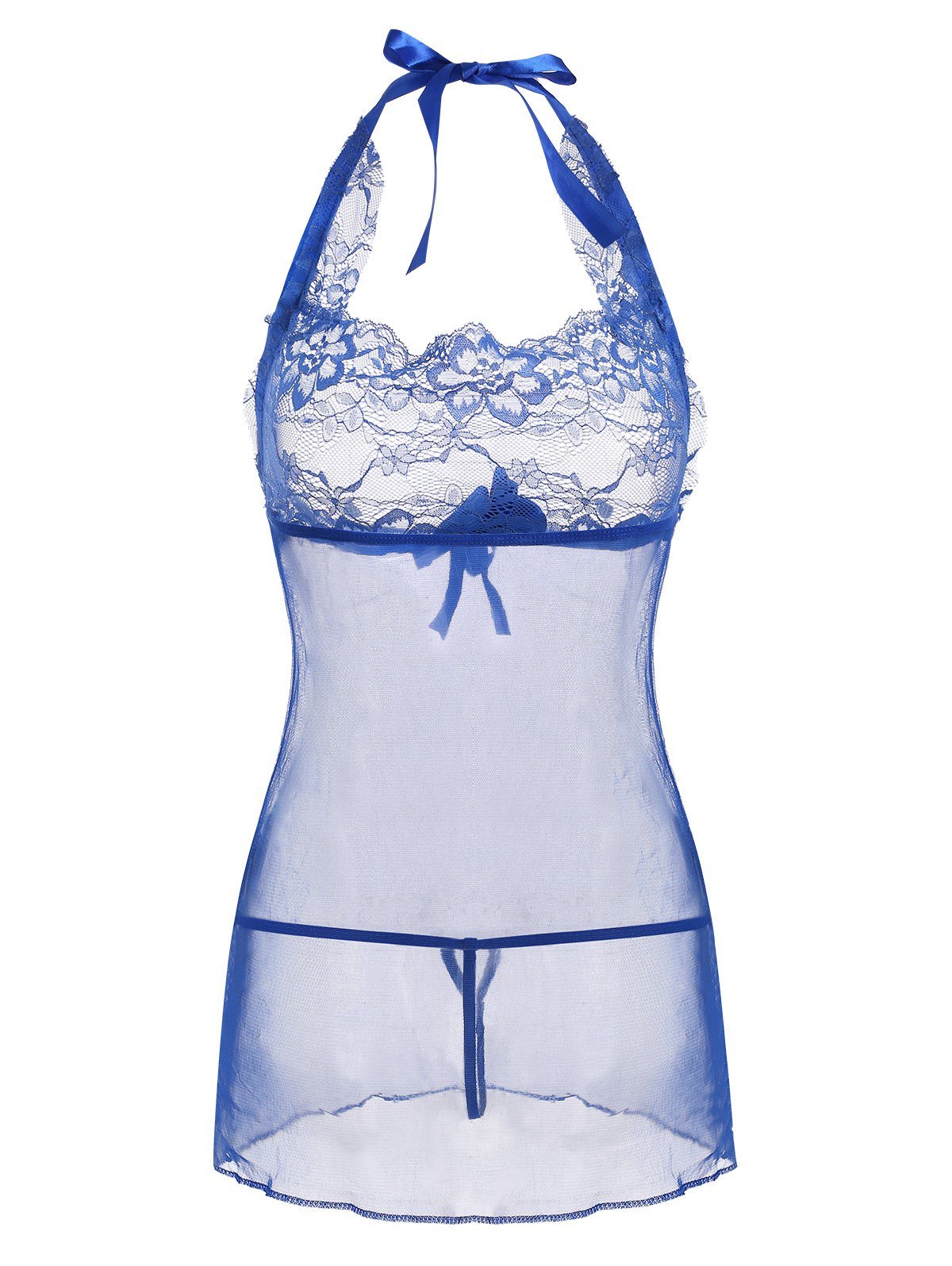 Halter Sheer Mesh Glitter Lace Panel Lingerie Babydoll
