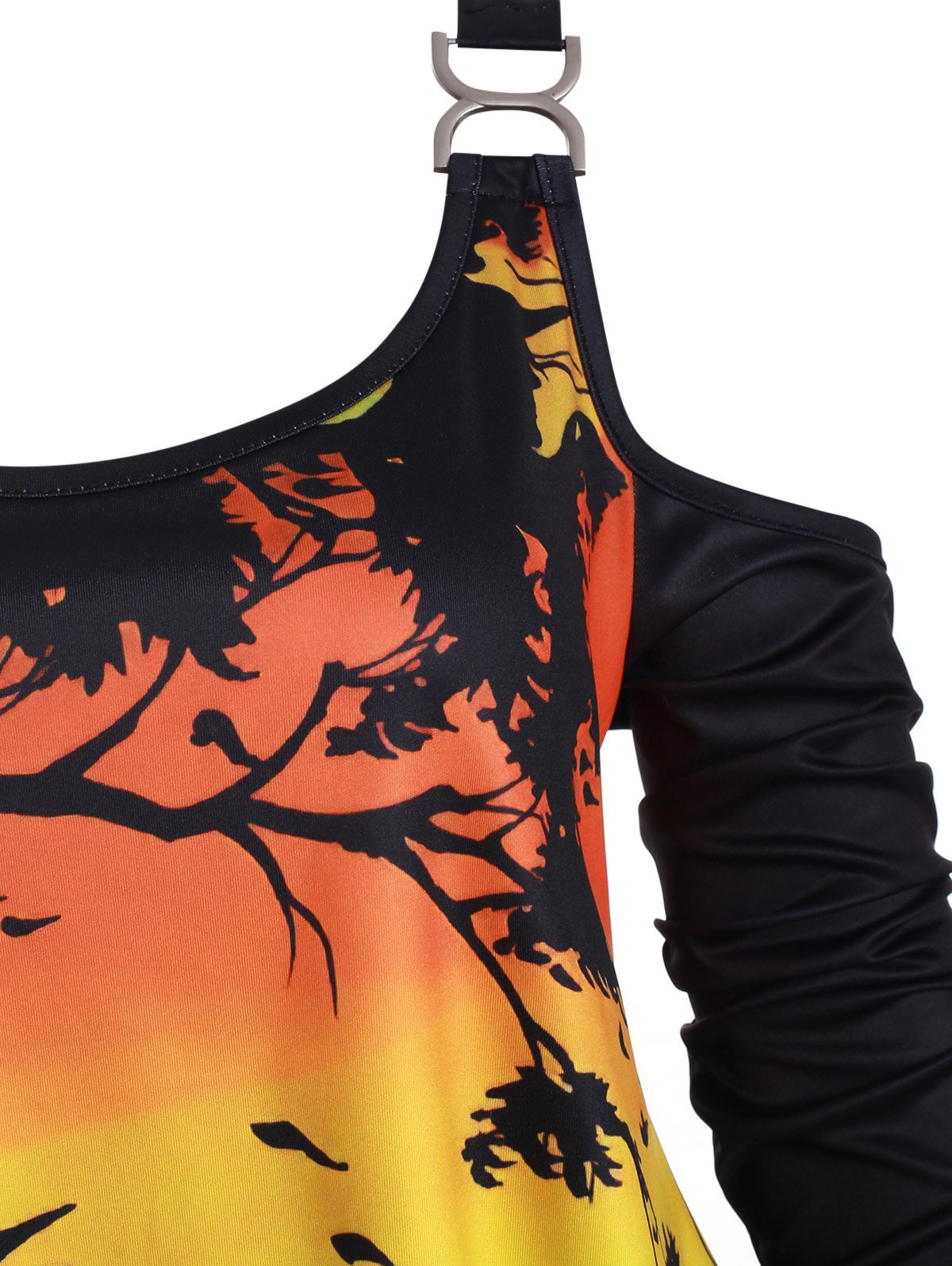 Handkerchief Witch Print Halloween Open Shoulder Plus Size Top
