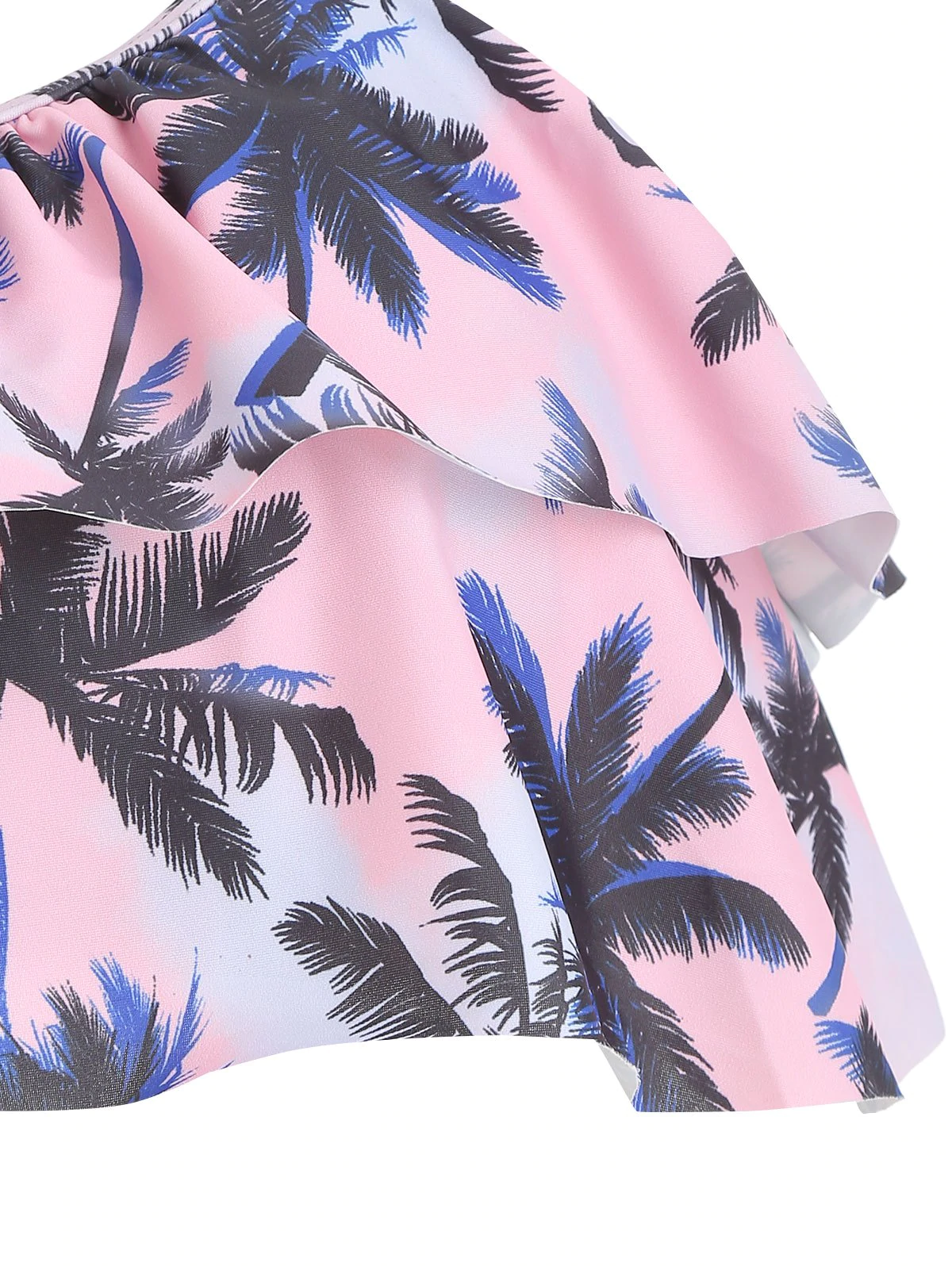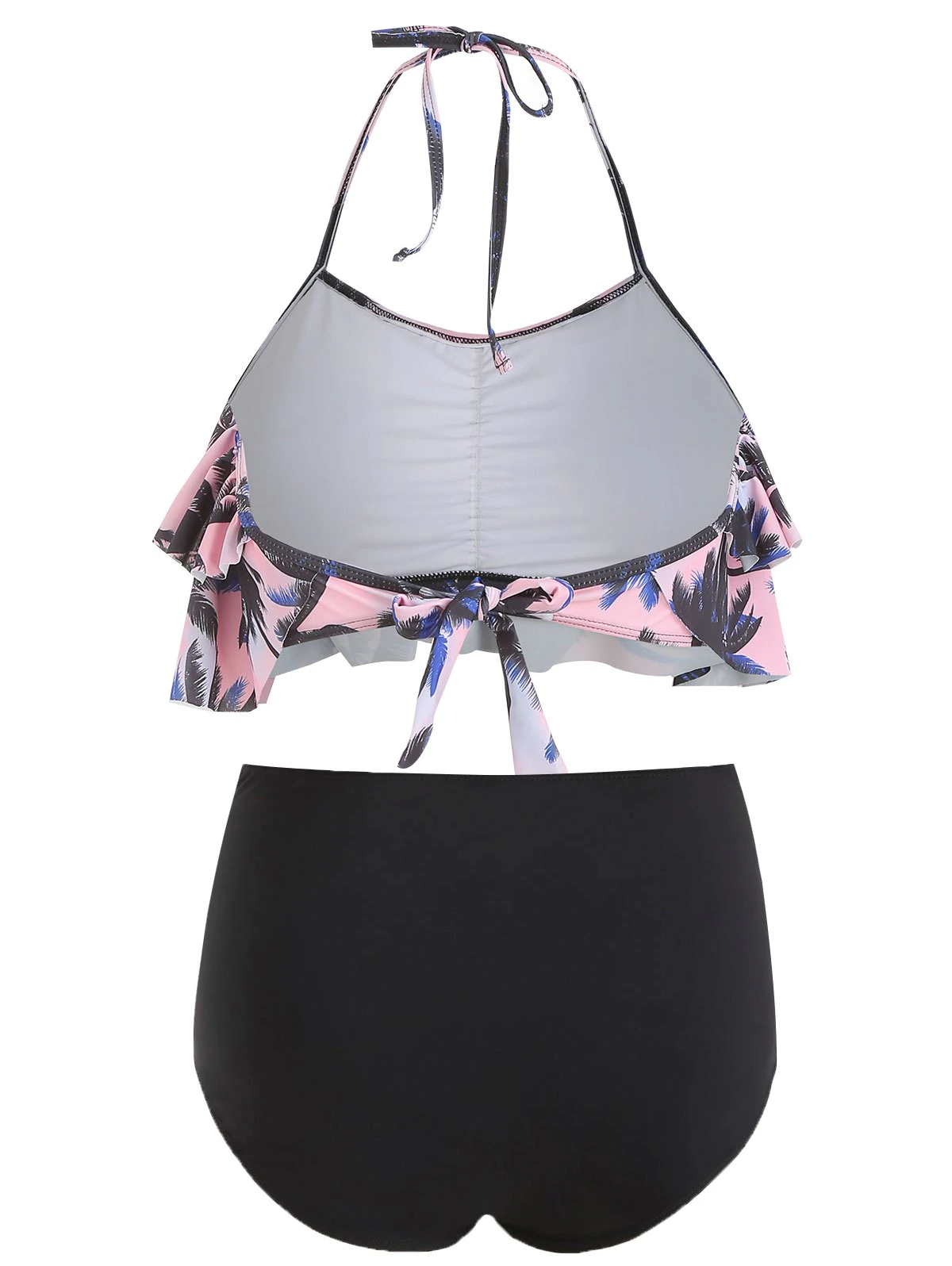Hawaii Coconut Palm Flounce High Waisted Bikini Set