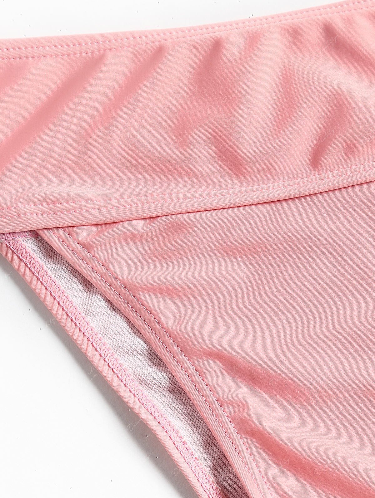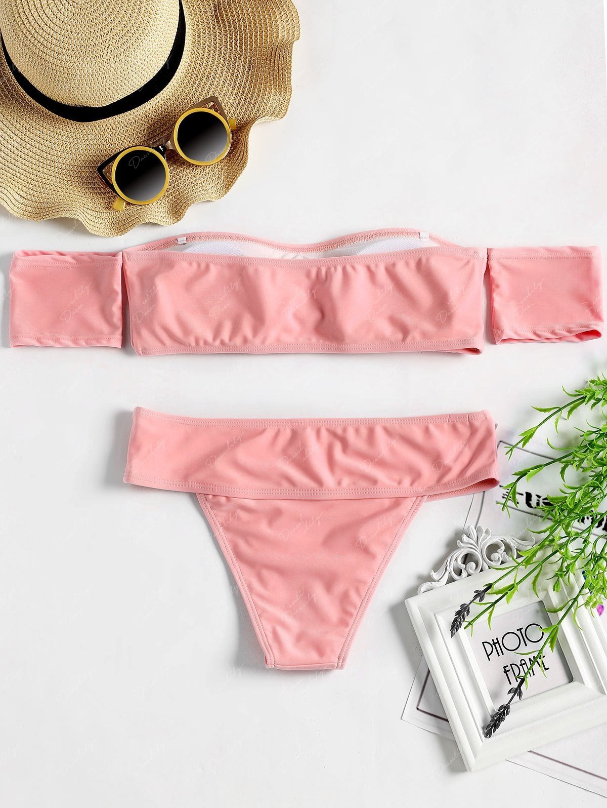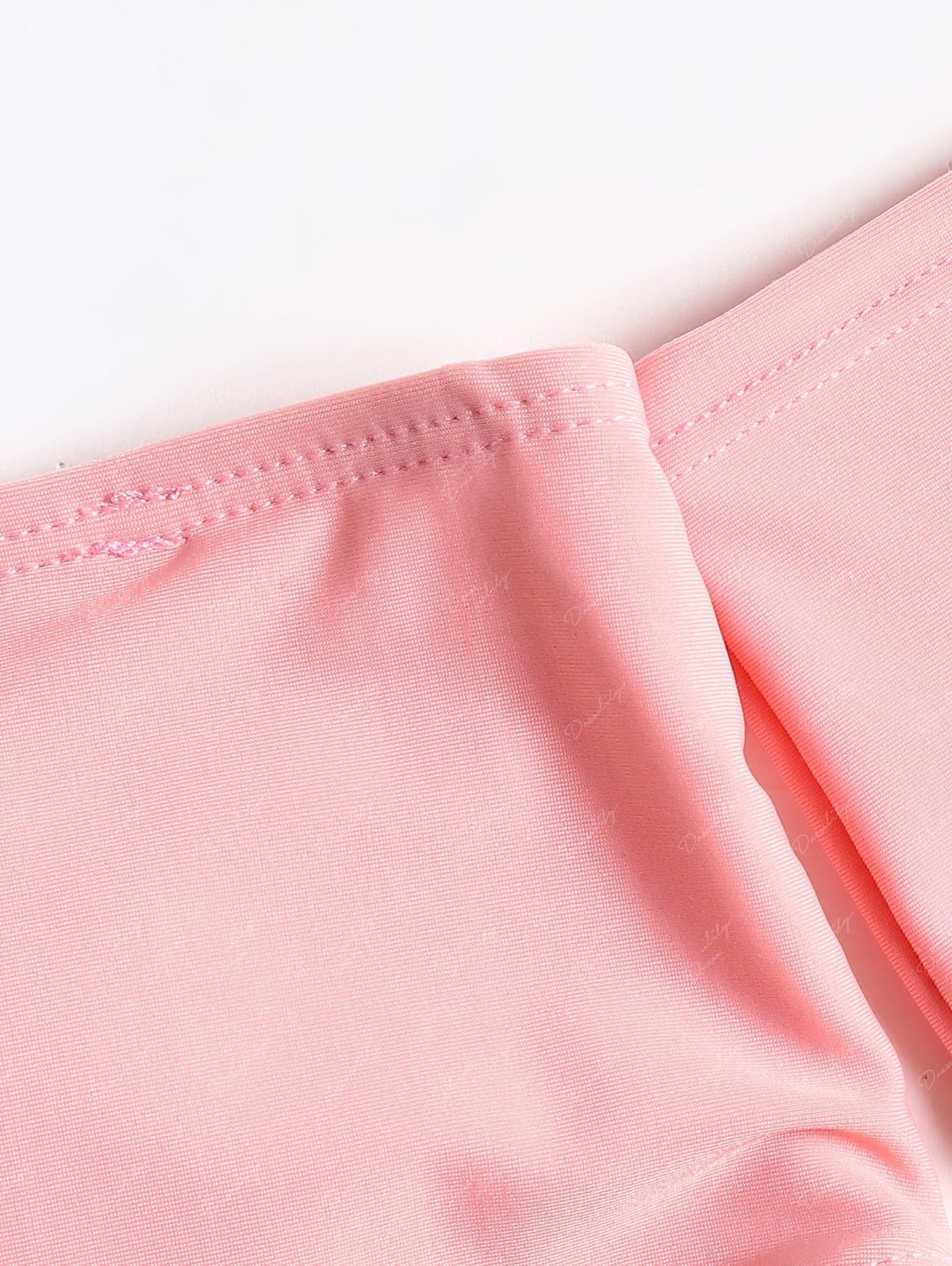 Super comfortable in soft, cool and breathable fabric, this solid bandeau bikini includes a short sleeves bra top and low waisted briefs. No underwire, sponge paddings included. To protect your beautiful skin, you can match with kimono or kaftan cover ups.