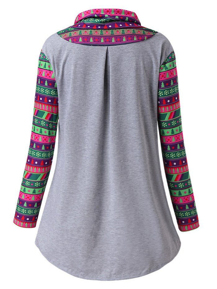 High Low Cowl Neck Snowflake Christmas Tree Top