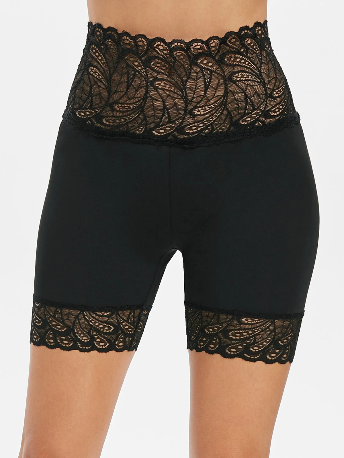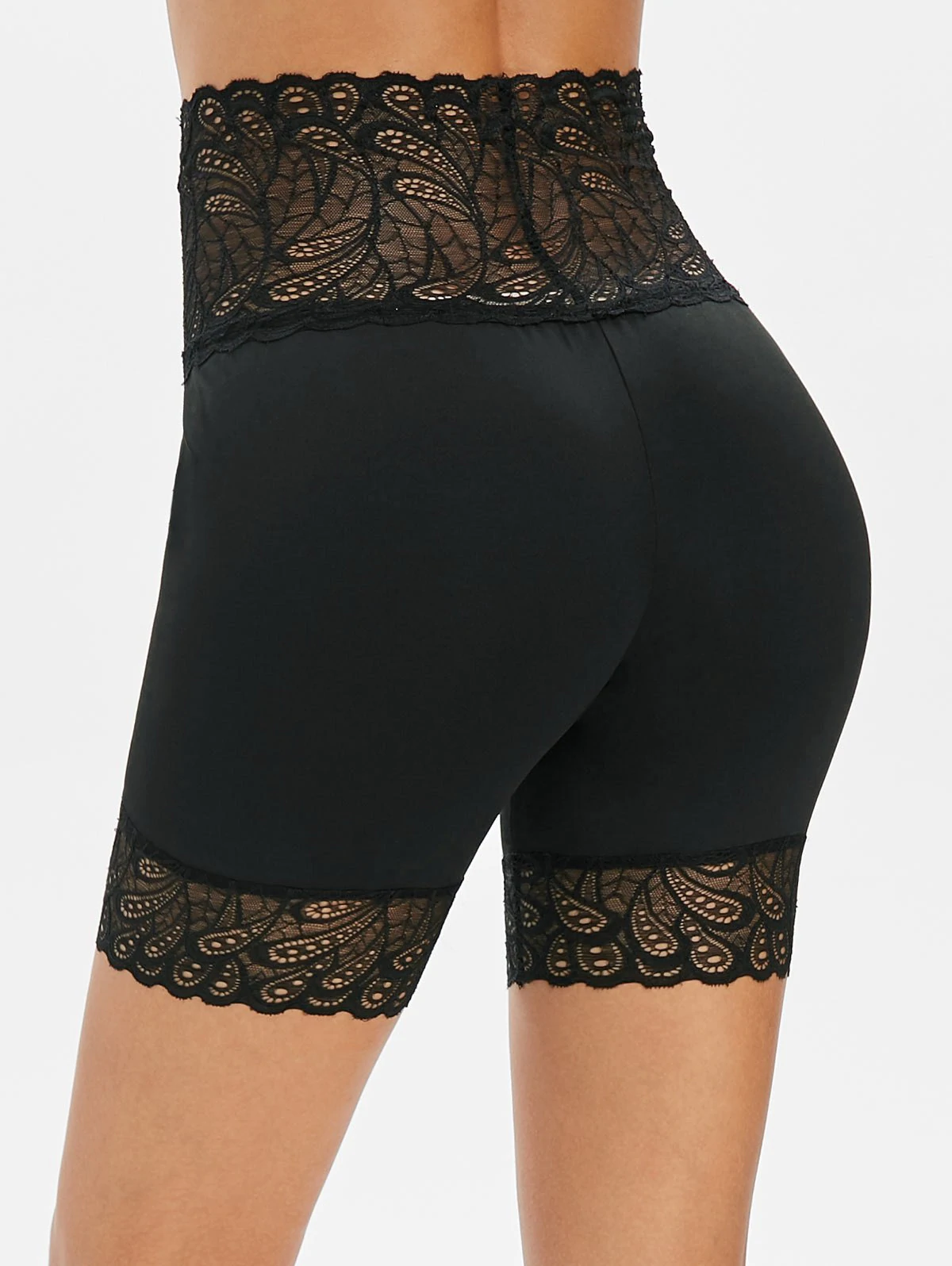 High Waist Lace Insert Short Leggings