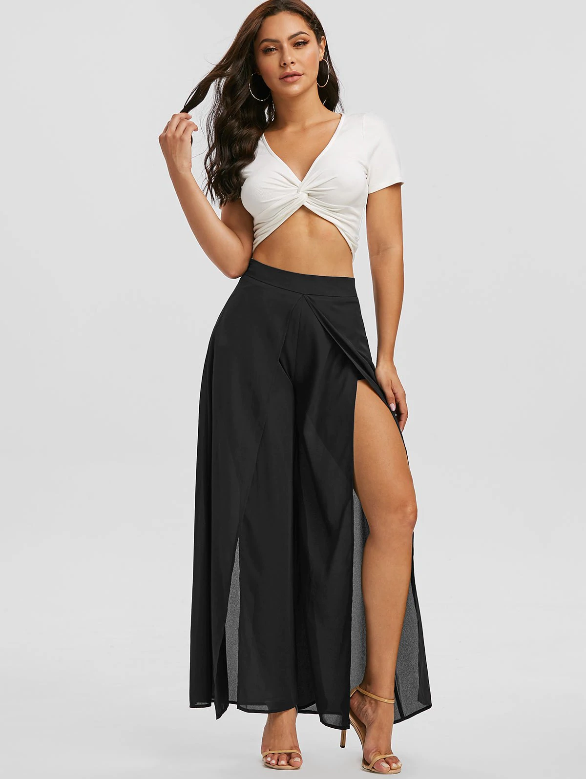 There are cozy, flowy, and fashion pants for you! High waist fit and wide-leg silhouette allow you to go everywhere, the overlap slit design adds some charm.