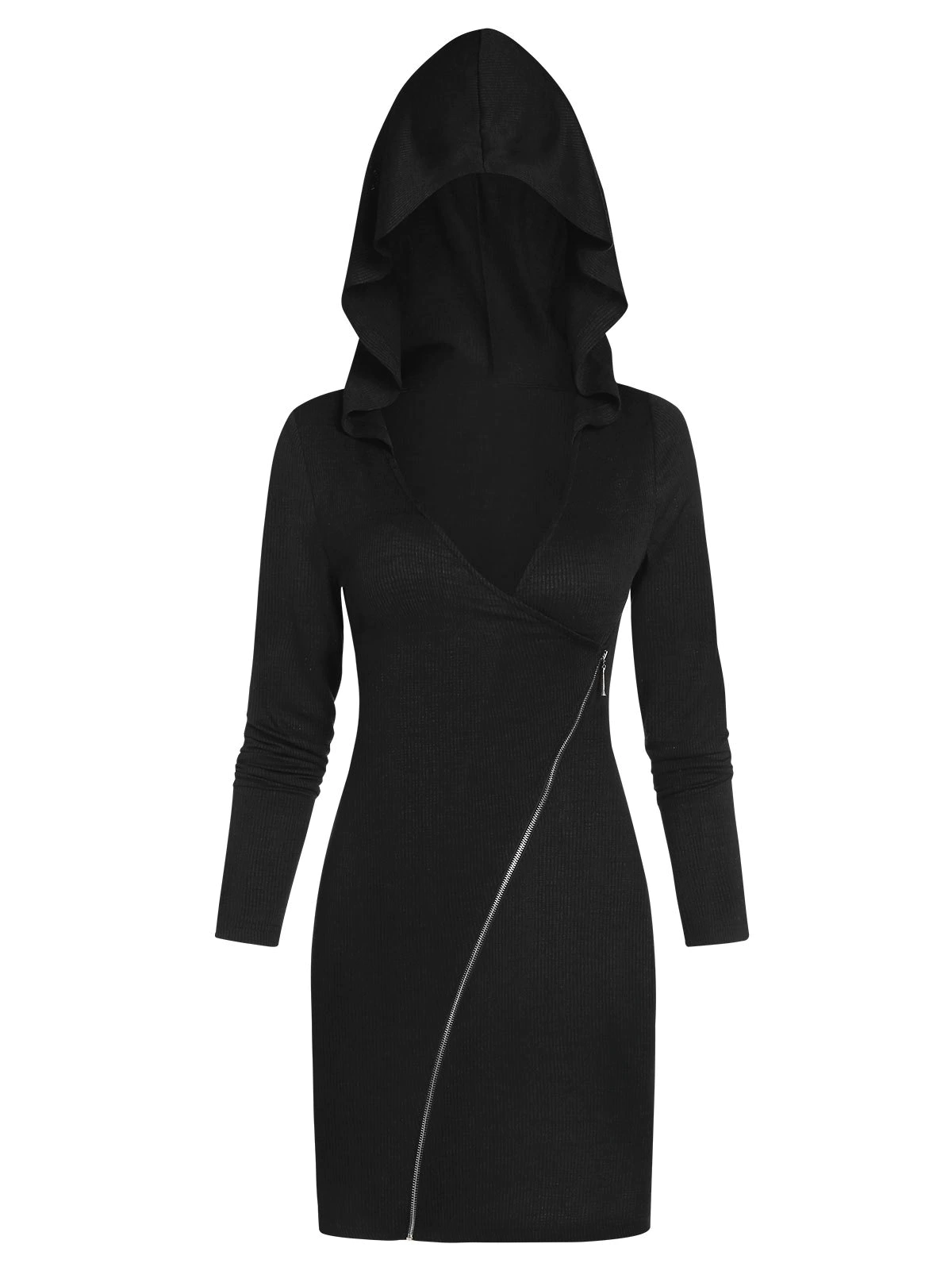 1 review for Hooded Asymmetric Zip Up Ribbed Coat