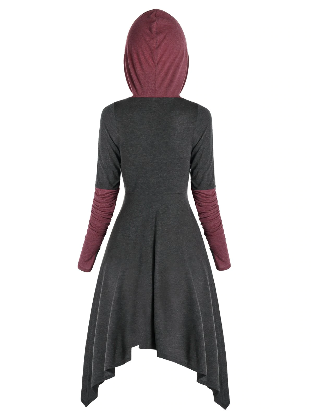 Hooded Cinched Asymmetrical Thumbhole Contrast Dress