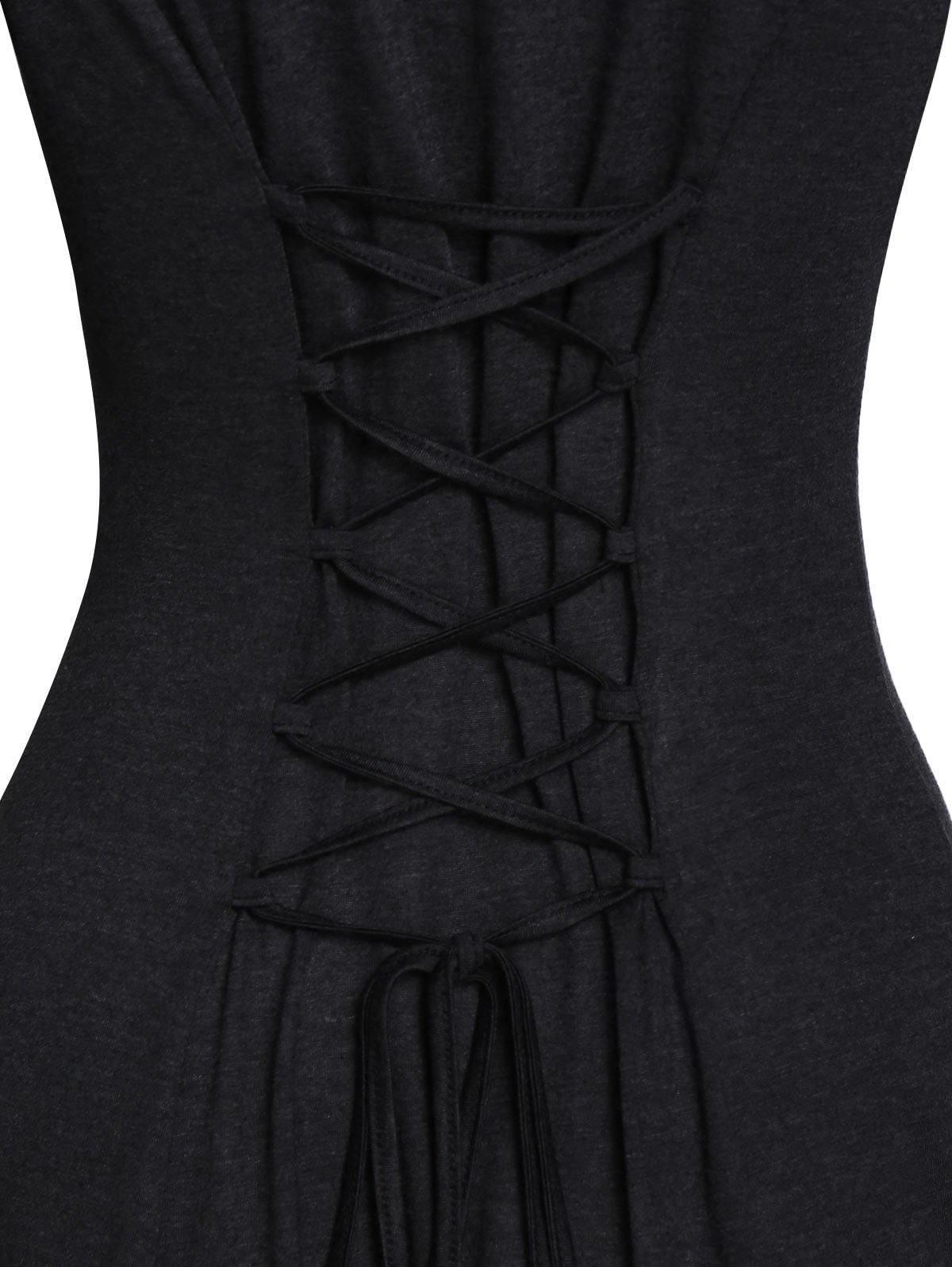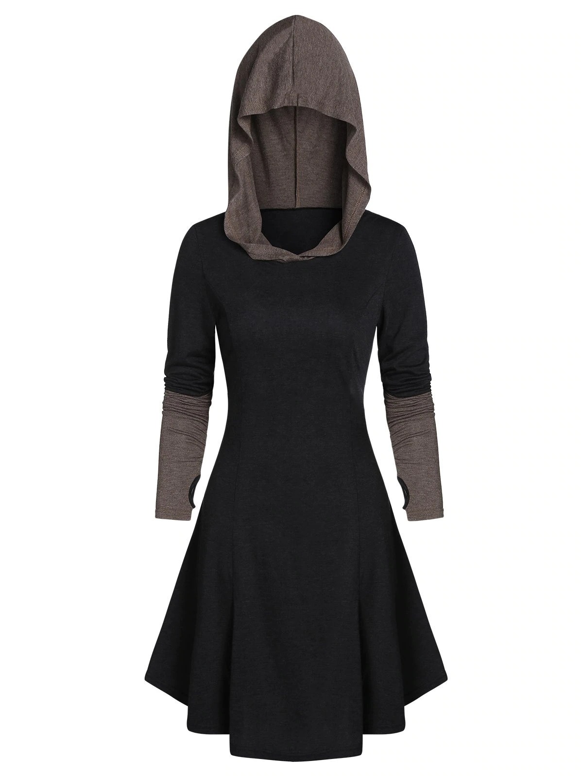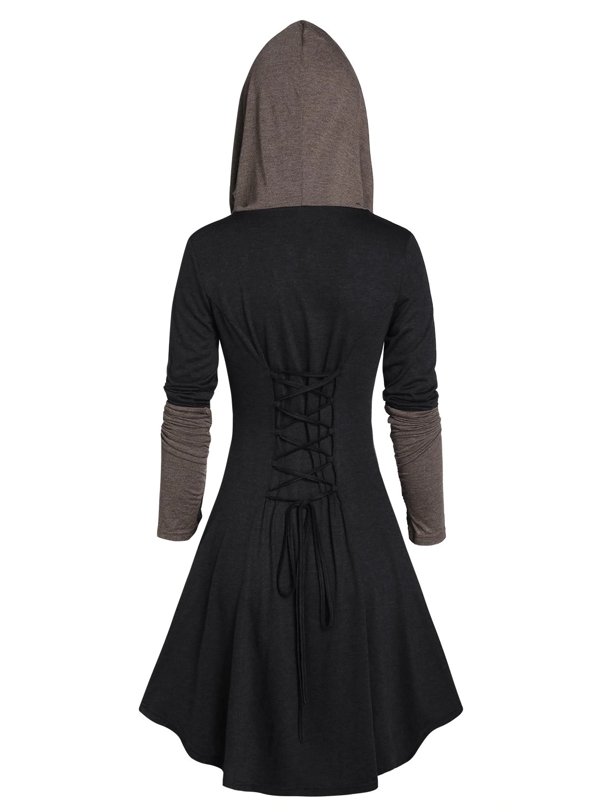 2 reviews for Hooded Glove Sleeve Lace-up Contrast Flare Dress