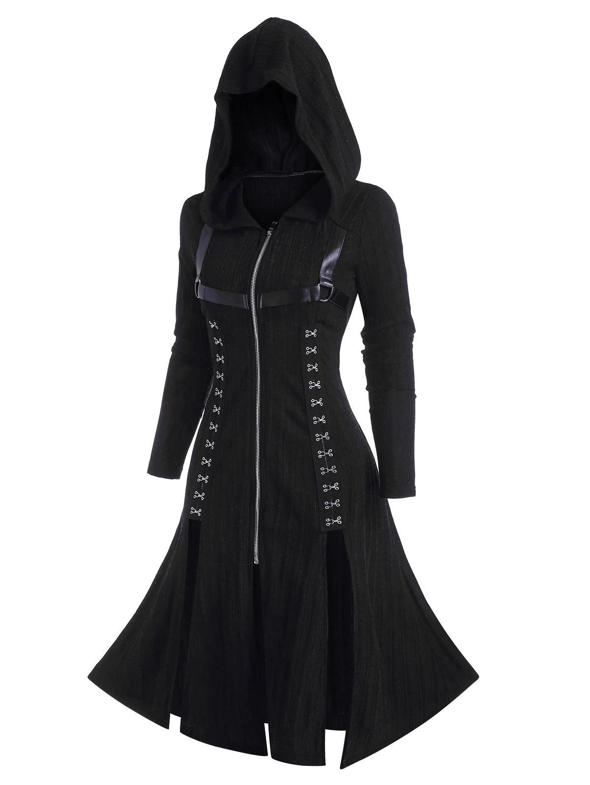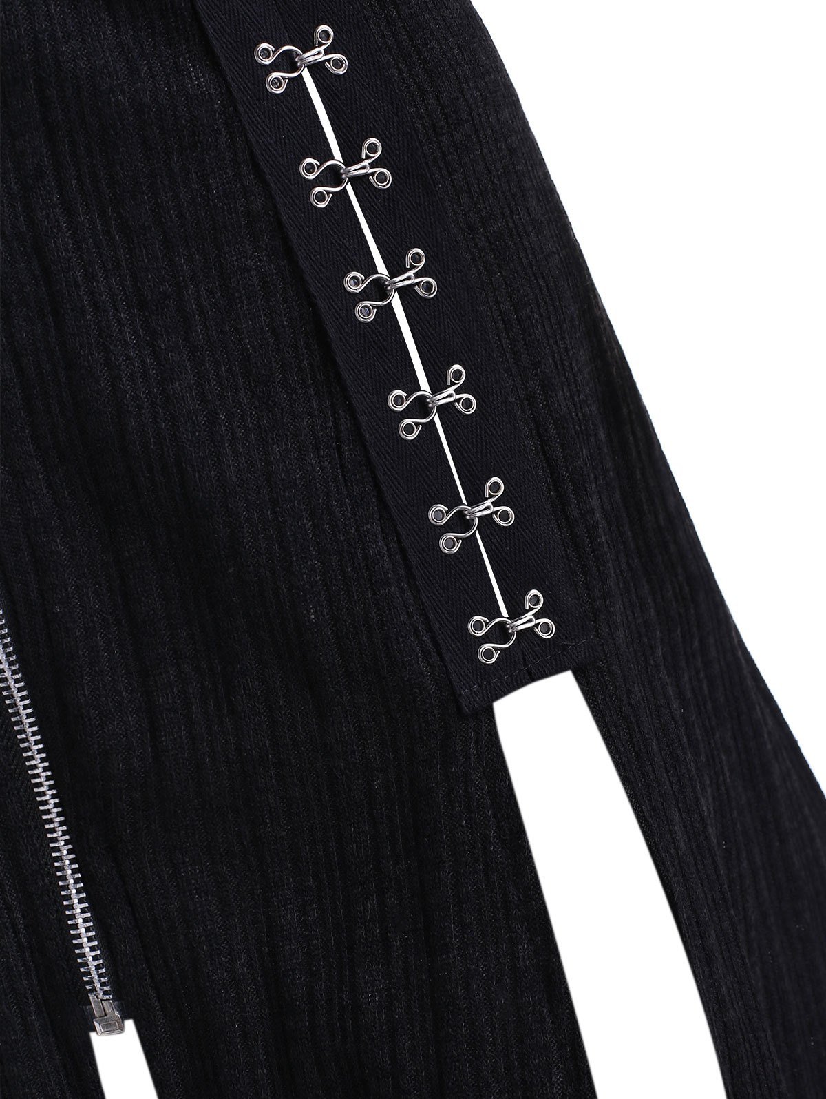 3 reviews for Hooded Hook Embellished Slit Zip Up Cardigan