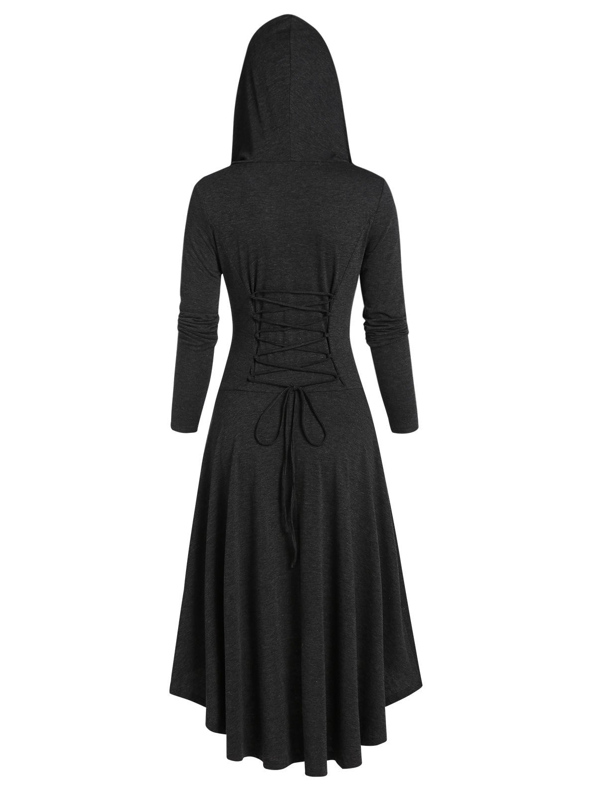 Hooded Lace-up High Low Casual Dress