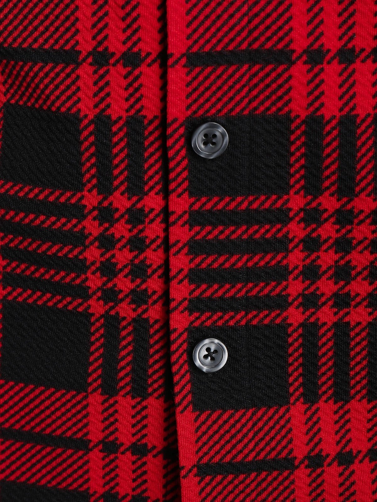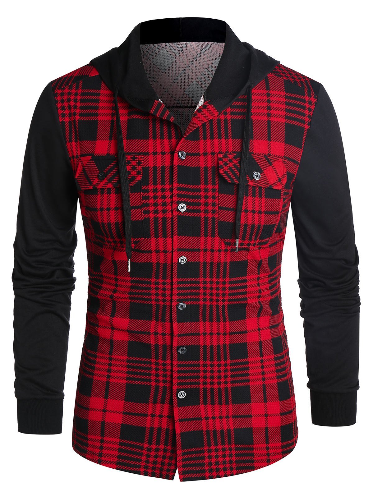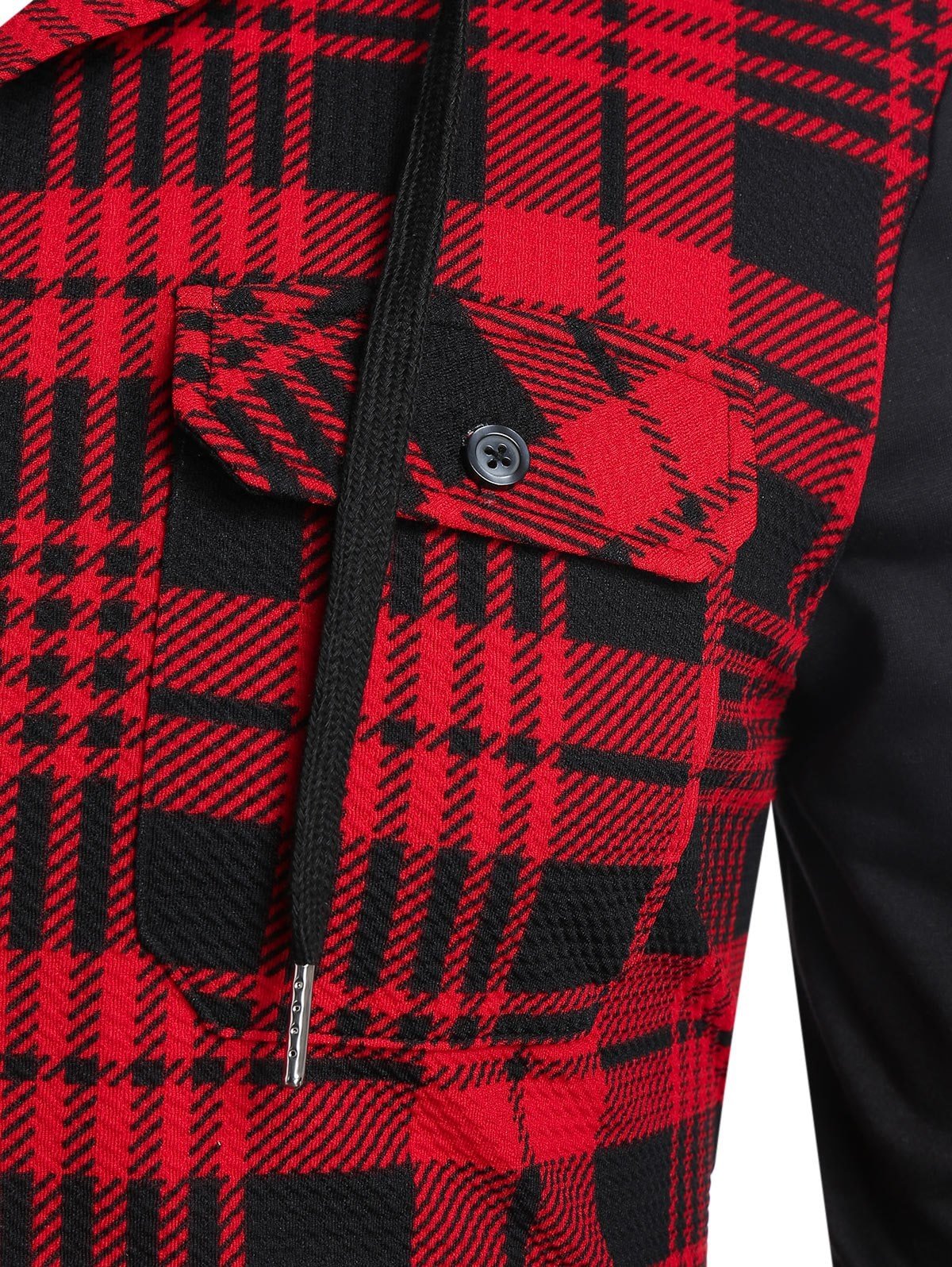 Hooded Plaid Print Double Pockets Button Up Shirt