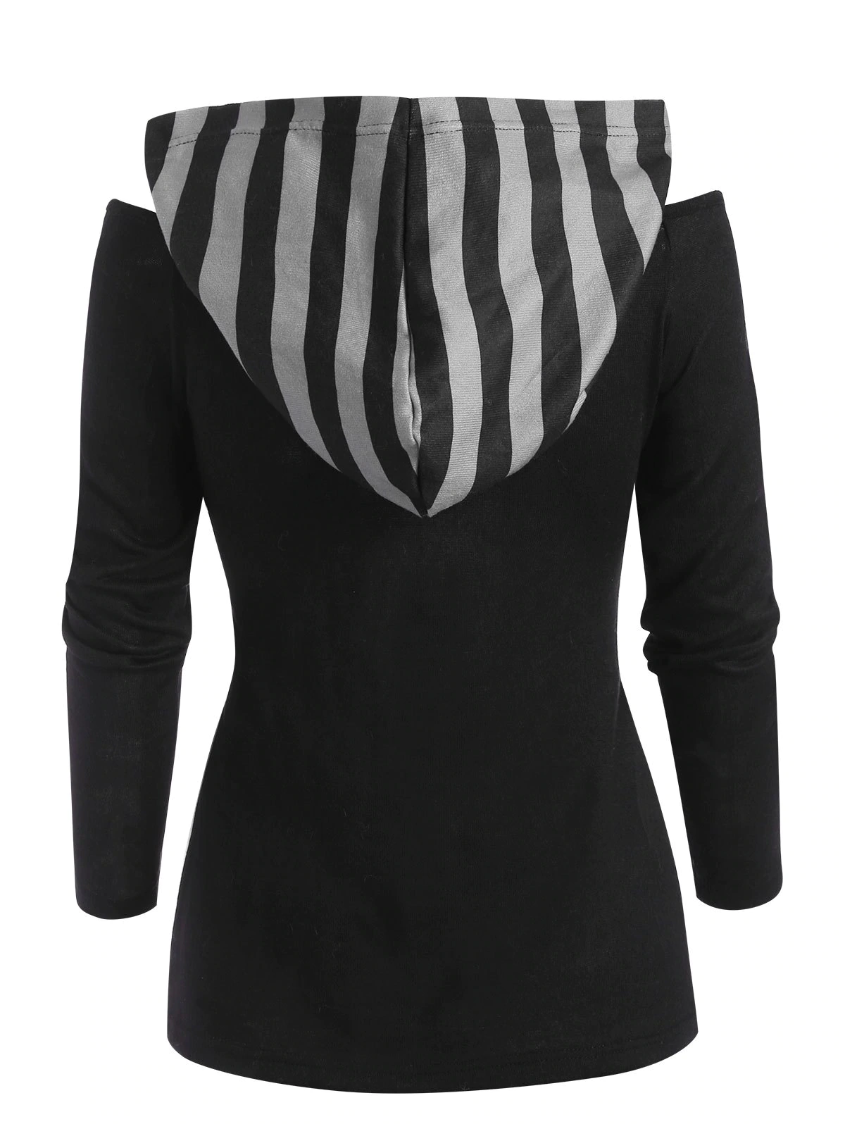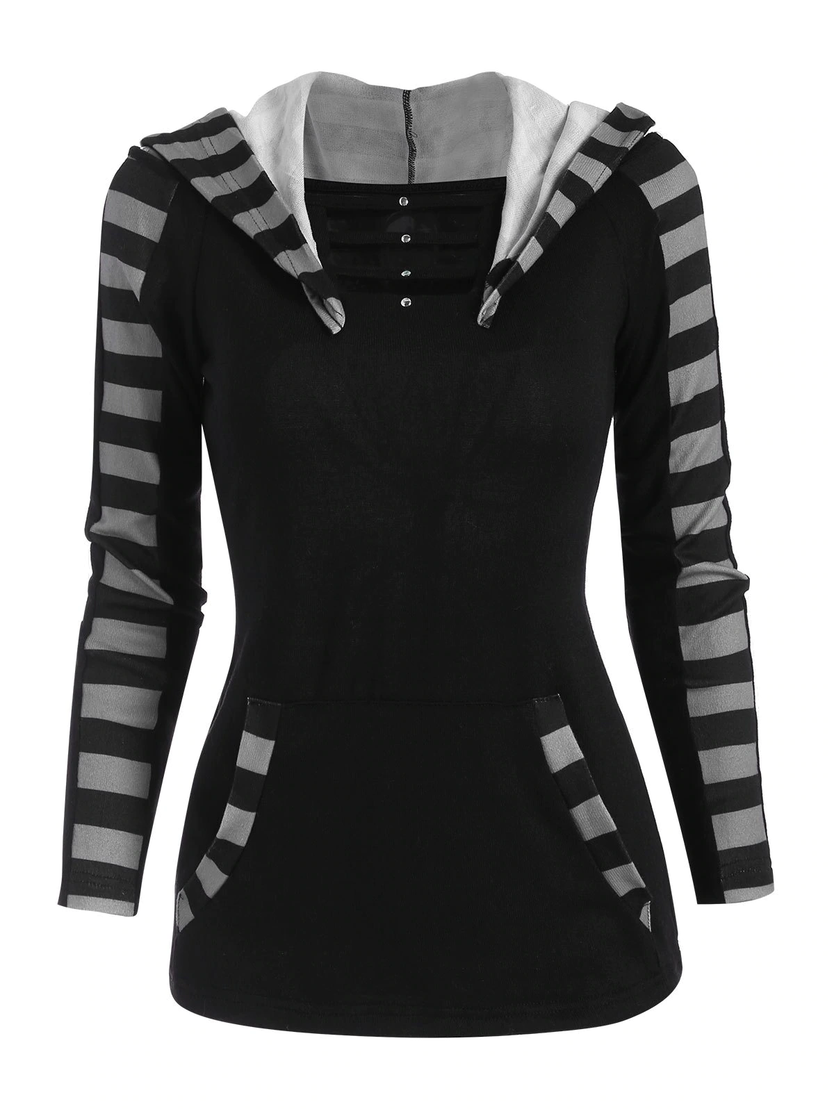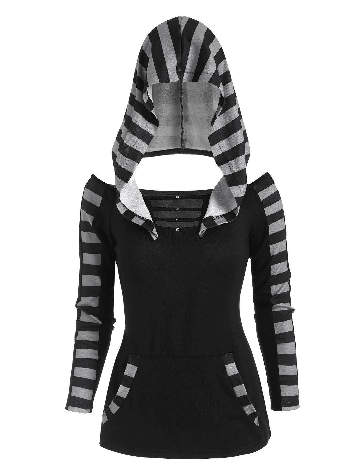 Hooded Striped Kangaroo Pocket Rivet Cutout Knitwear