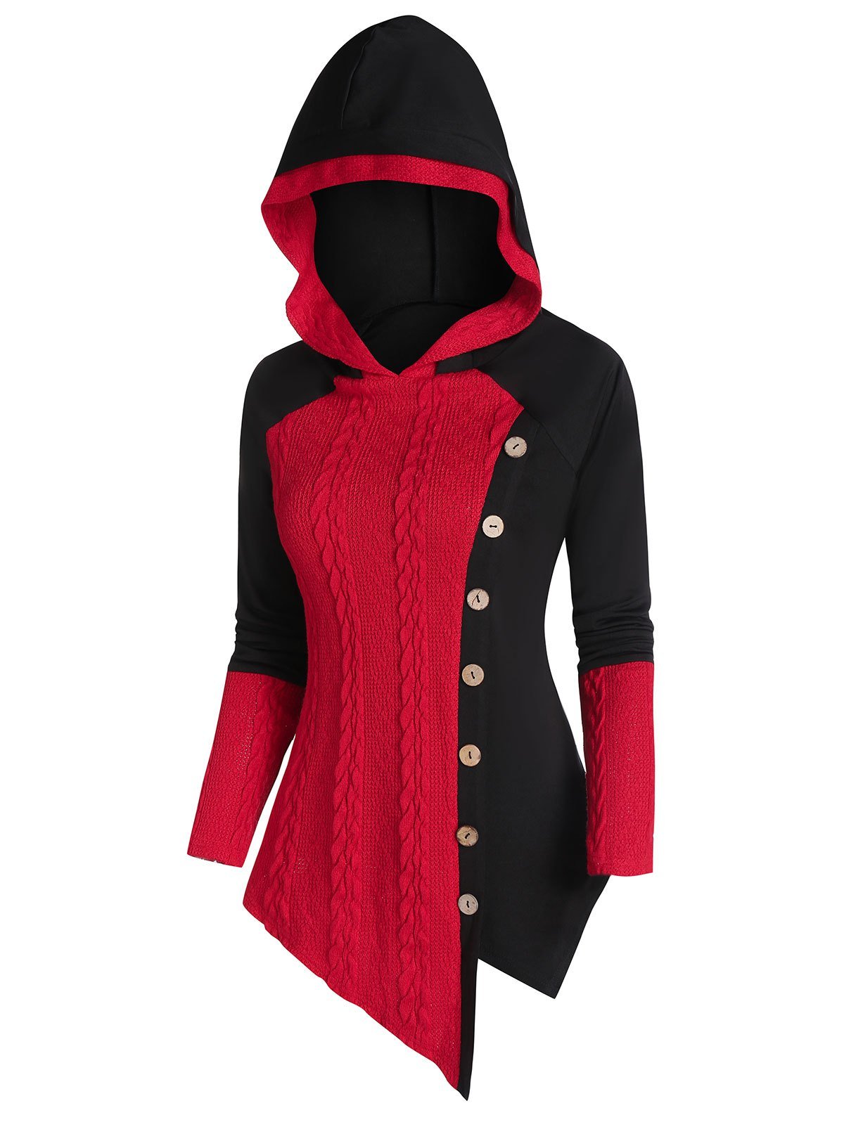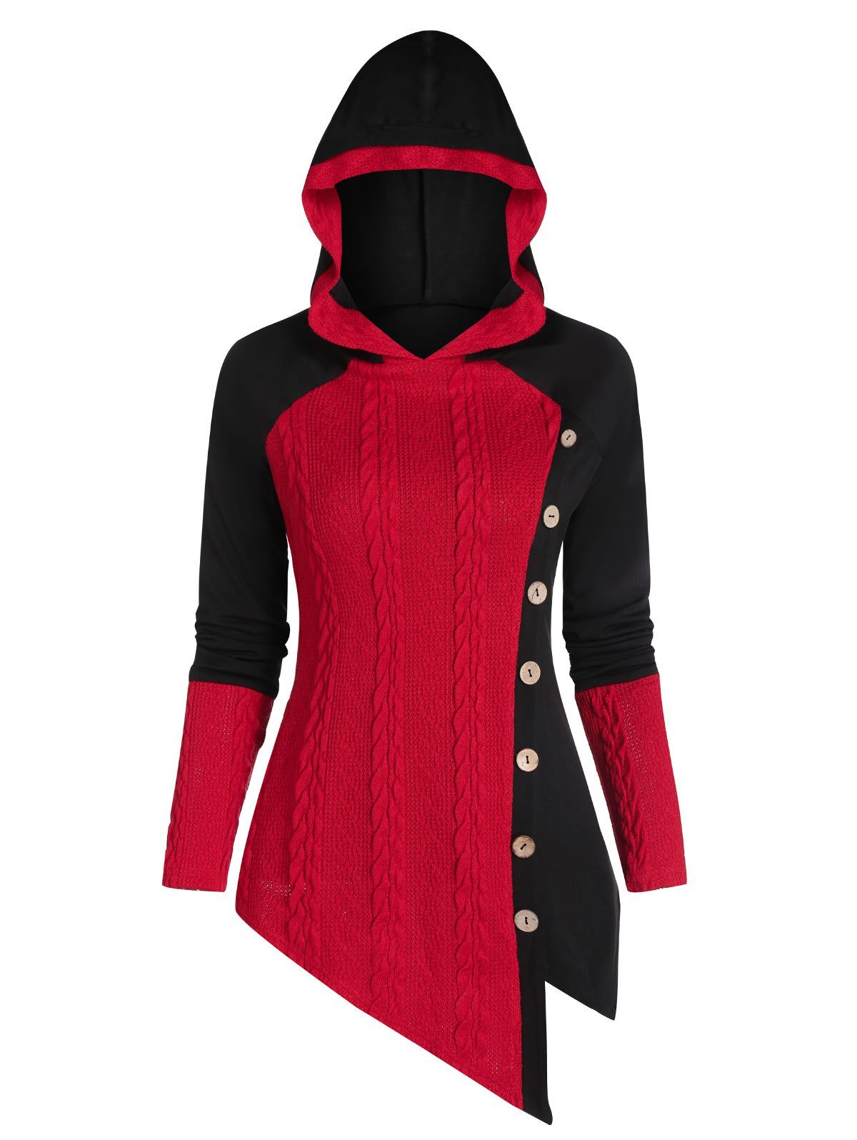 1 review for Hooded Two Tone Buttoned Cable Knit Top