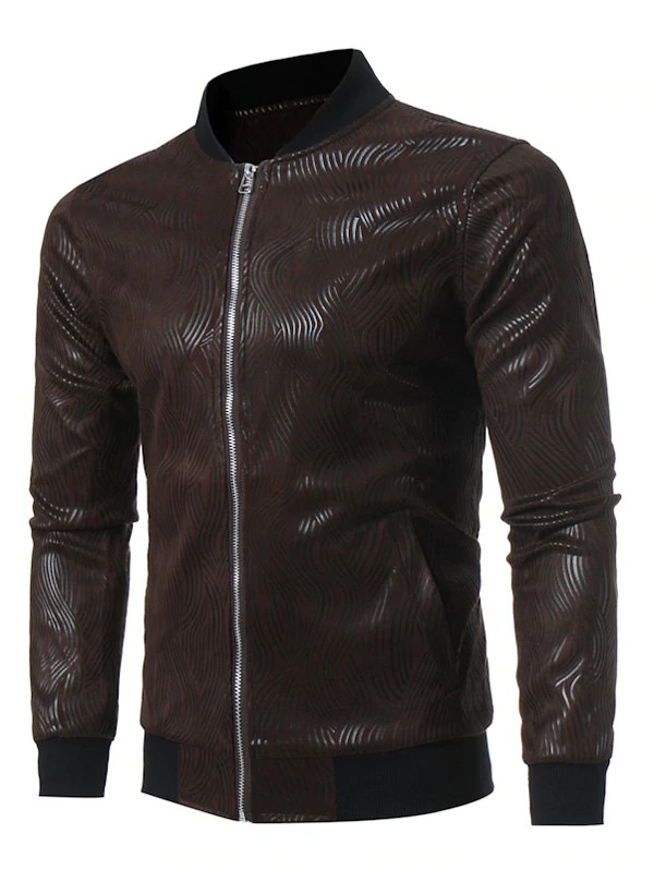 Irregular Stripe Zip Up Suede Jacket