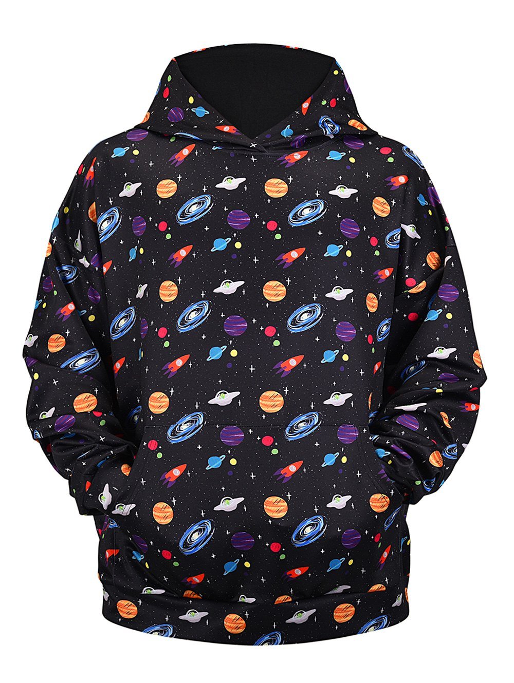 Kangaroo Pocket Universe Planets Print Hoodie