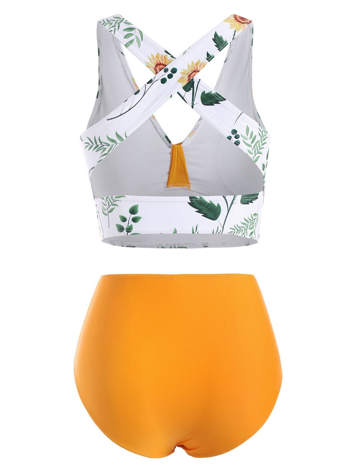 Knotted Criss Cross High Waisted Sunflower Tankini Swimwear