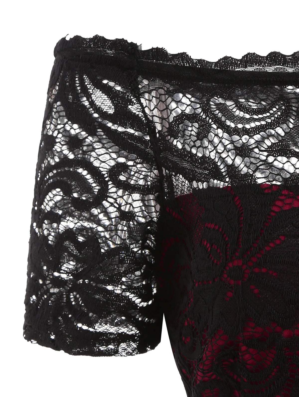 Plus Size Flower Skull Lace Bowknot Vintage Dress