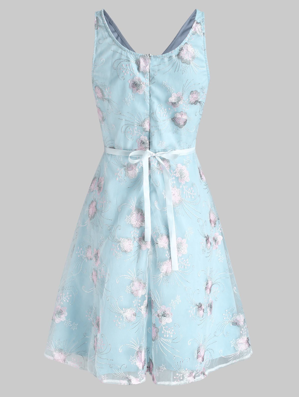 Lace Flower Embroidery Ribbon Belted A Line Dress