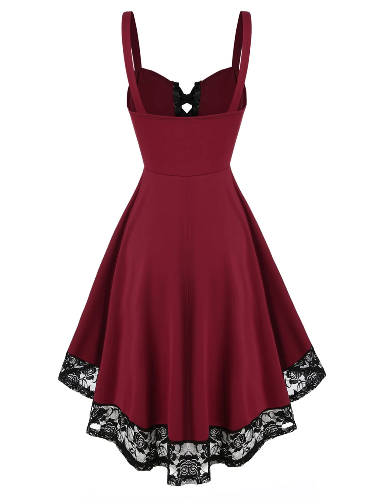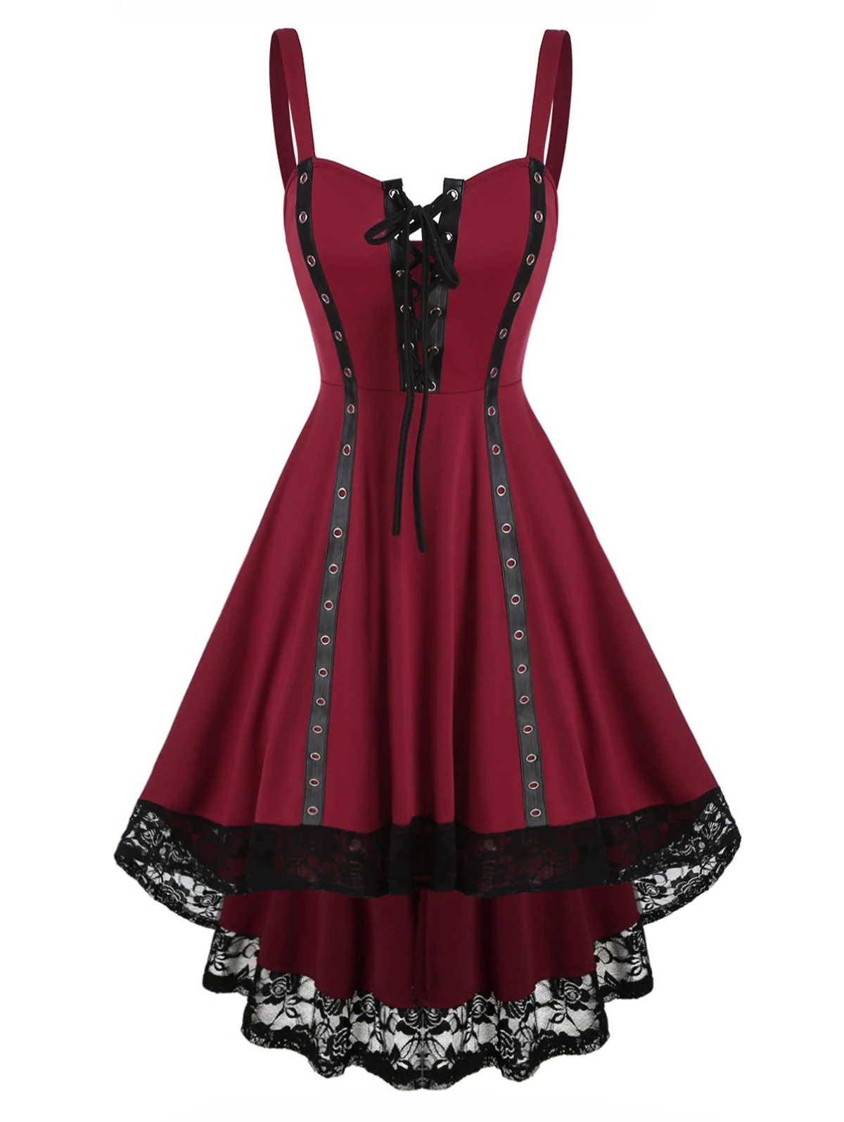 Lace Grommet Colorblock High Low Dress
