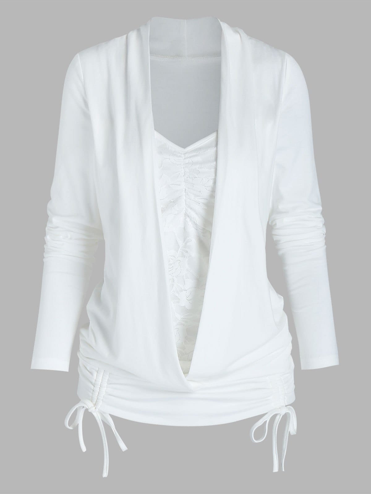 Lace Insert Cinched Faux Twinset Blouson T-shirt