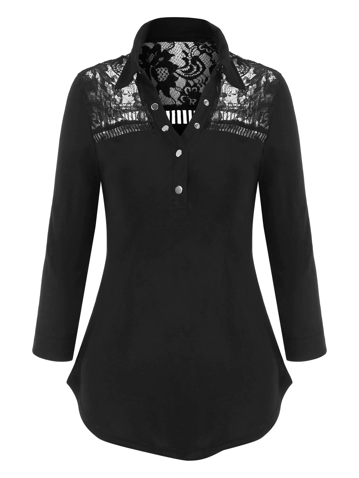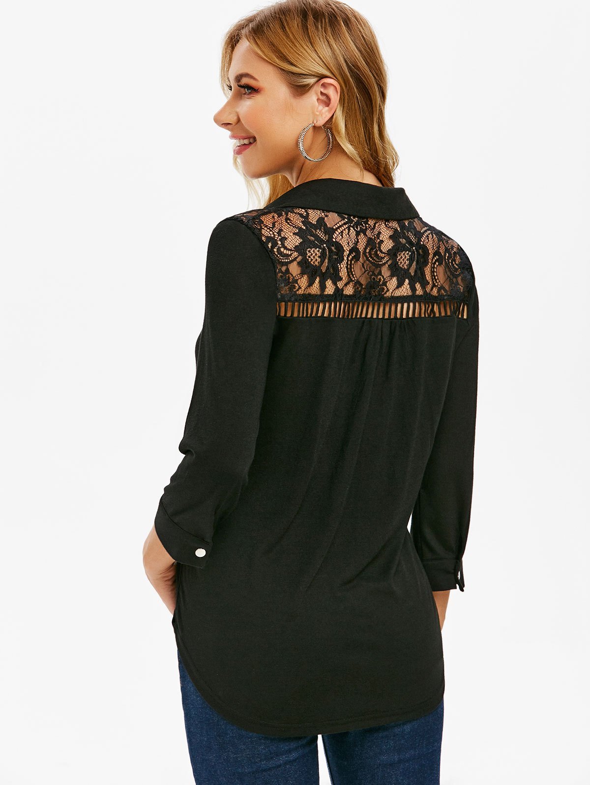 Lace Insert Half Button Top
