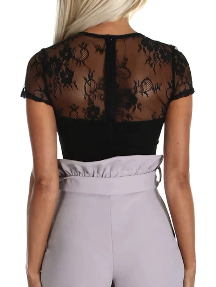Your feminine side can be fully shown with this short-sleeved bodysuit which flatters with semi-sheer lace insert without worrying about showing off too much of your body. And the plunge design shows a peek of your cleavage for a hint of sexy charm.