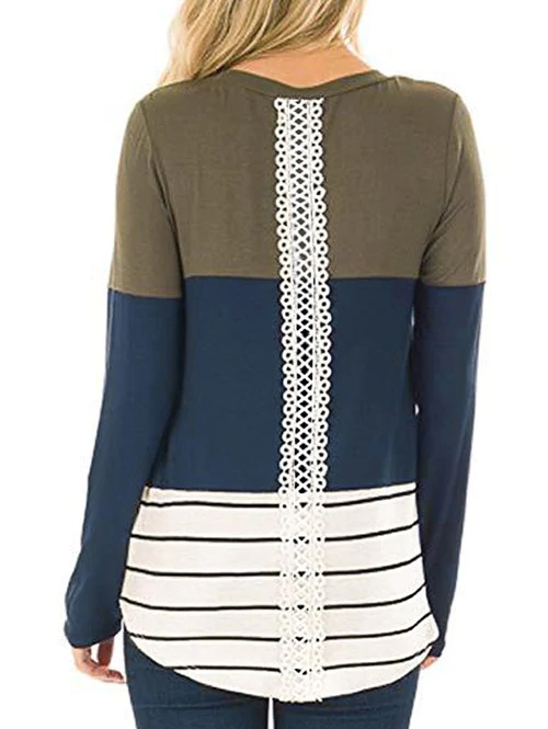 Lace Panel Colorblock Striped Long Sleeve Top