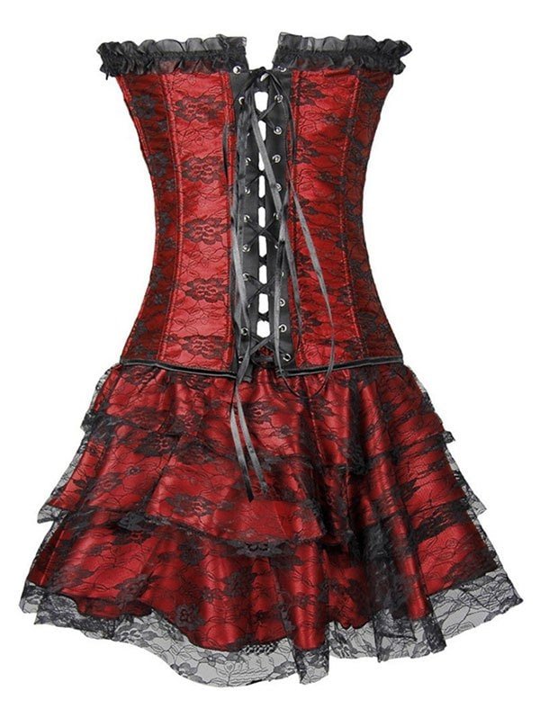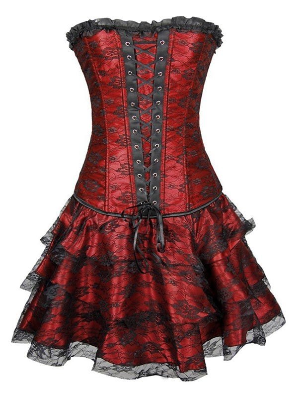 Lace Panel Lace-up Boned Corset Set with TuTu Petticoat