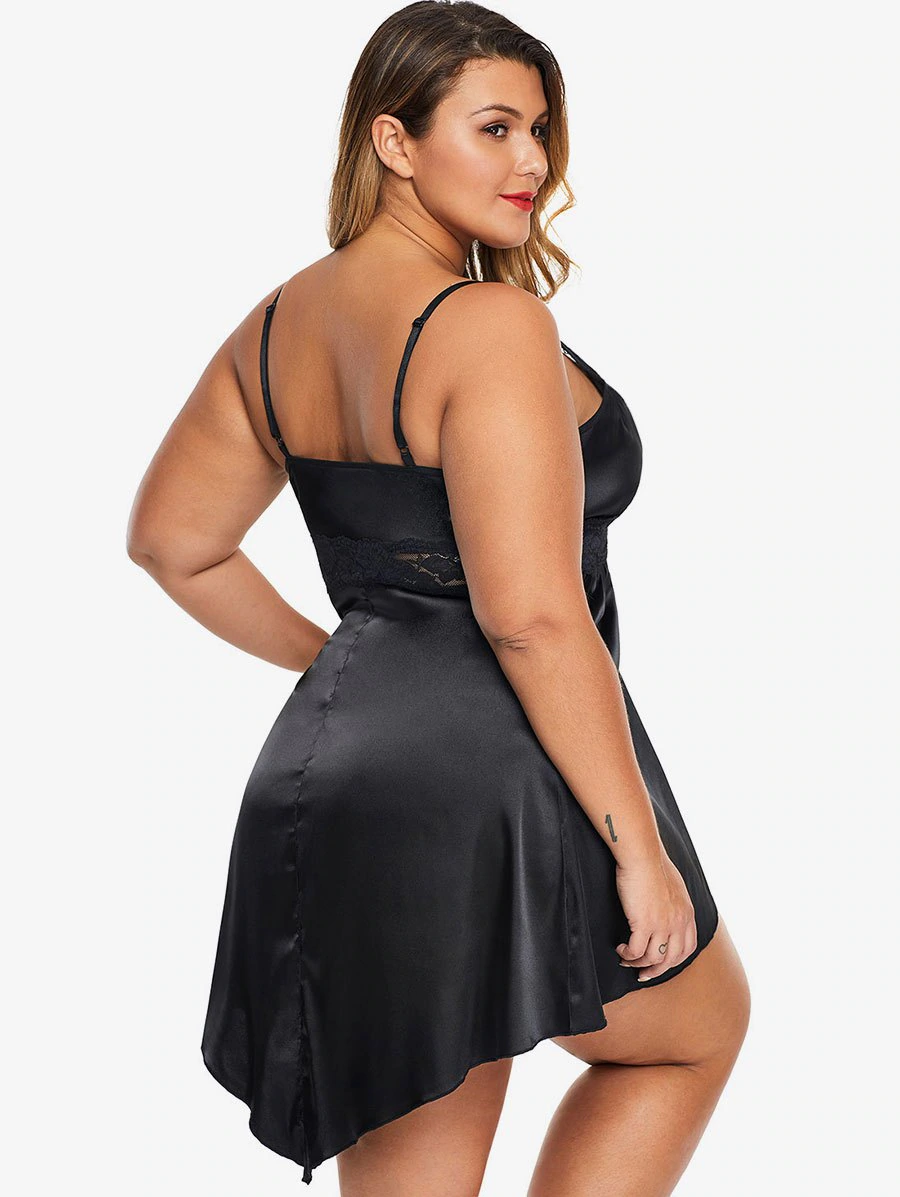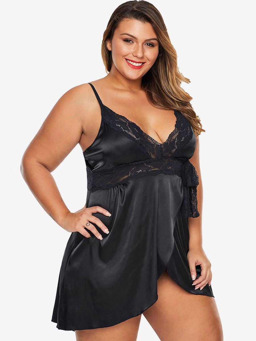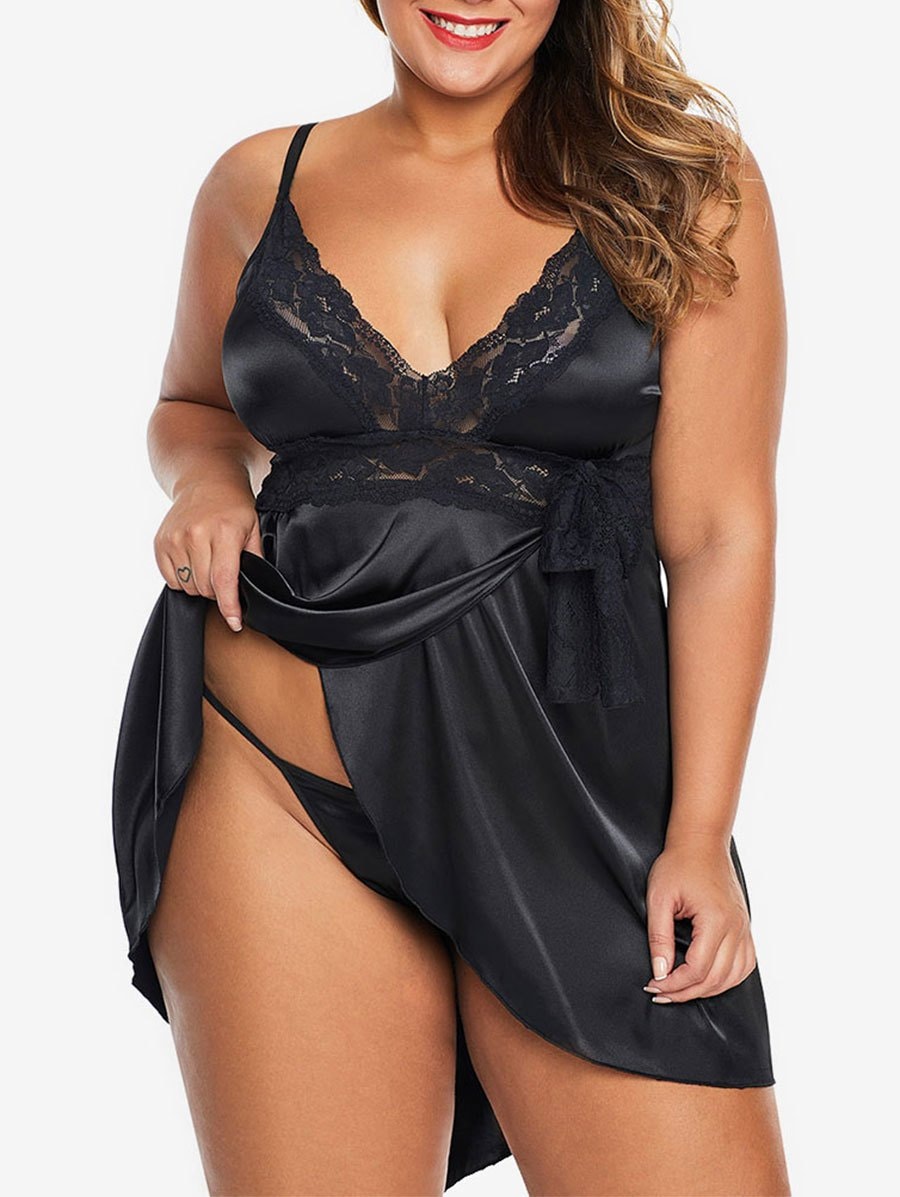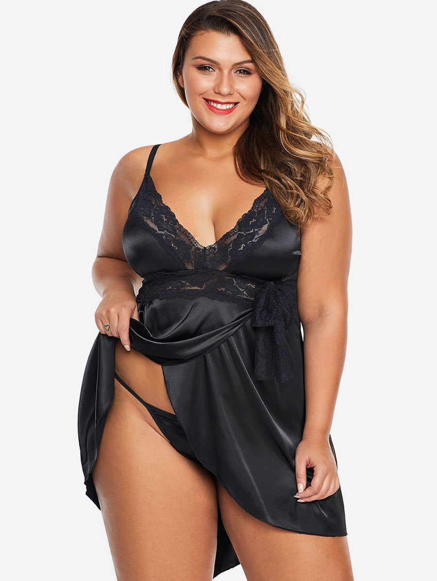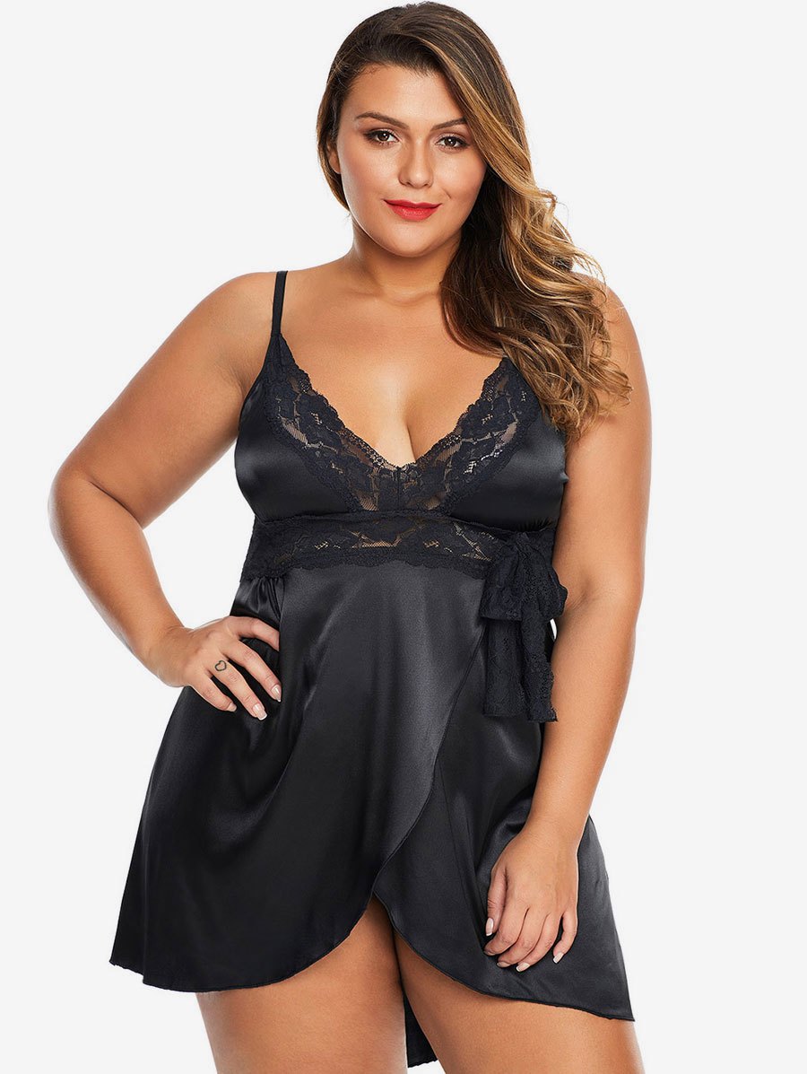 With a panel of the lace and satin texture and the flirty flyaway front for a flattering feminine look, this plus size lingerie babydoll surely gives you the power to rekindle the romance with your soulmates for those special moments.
