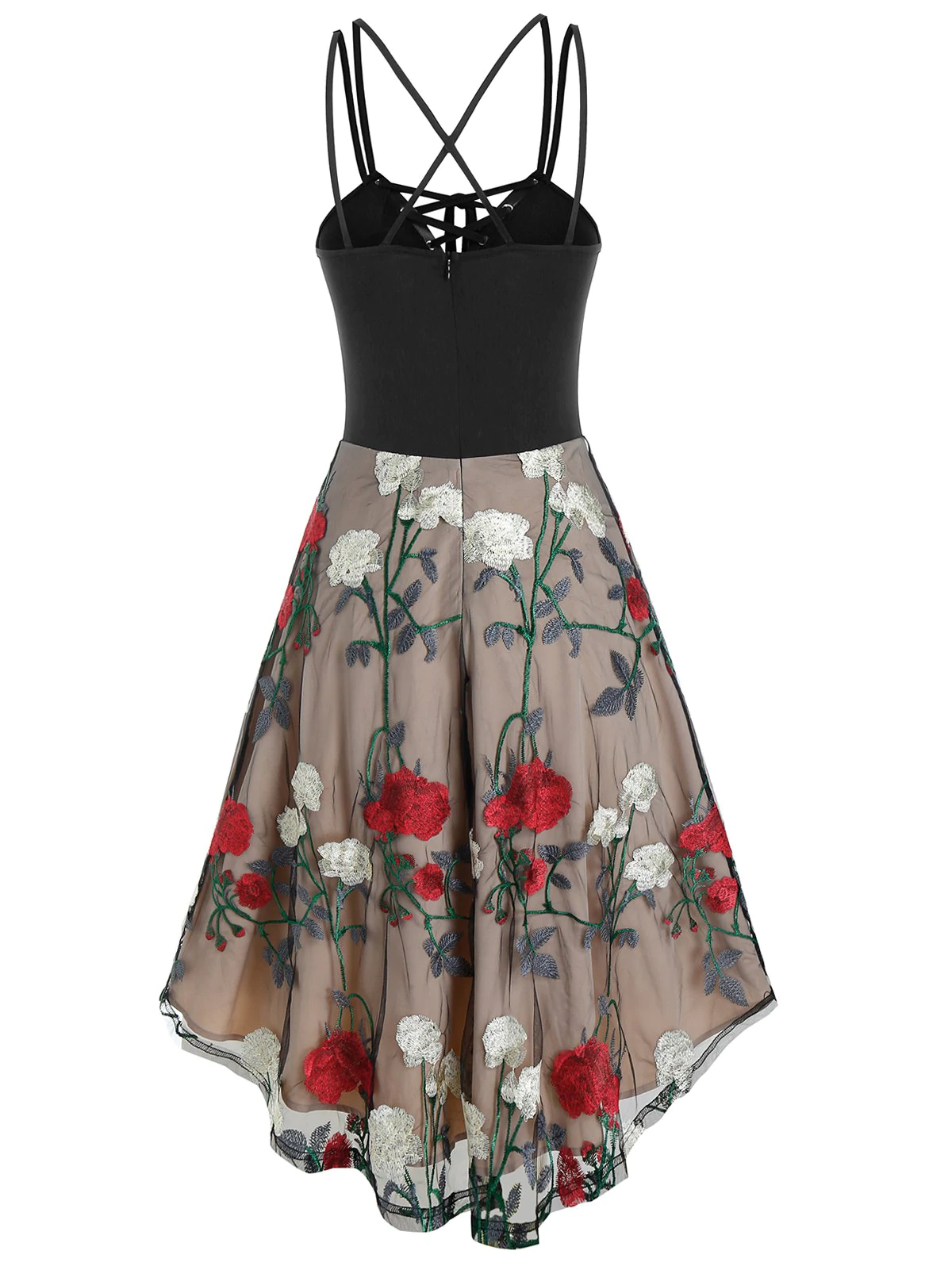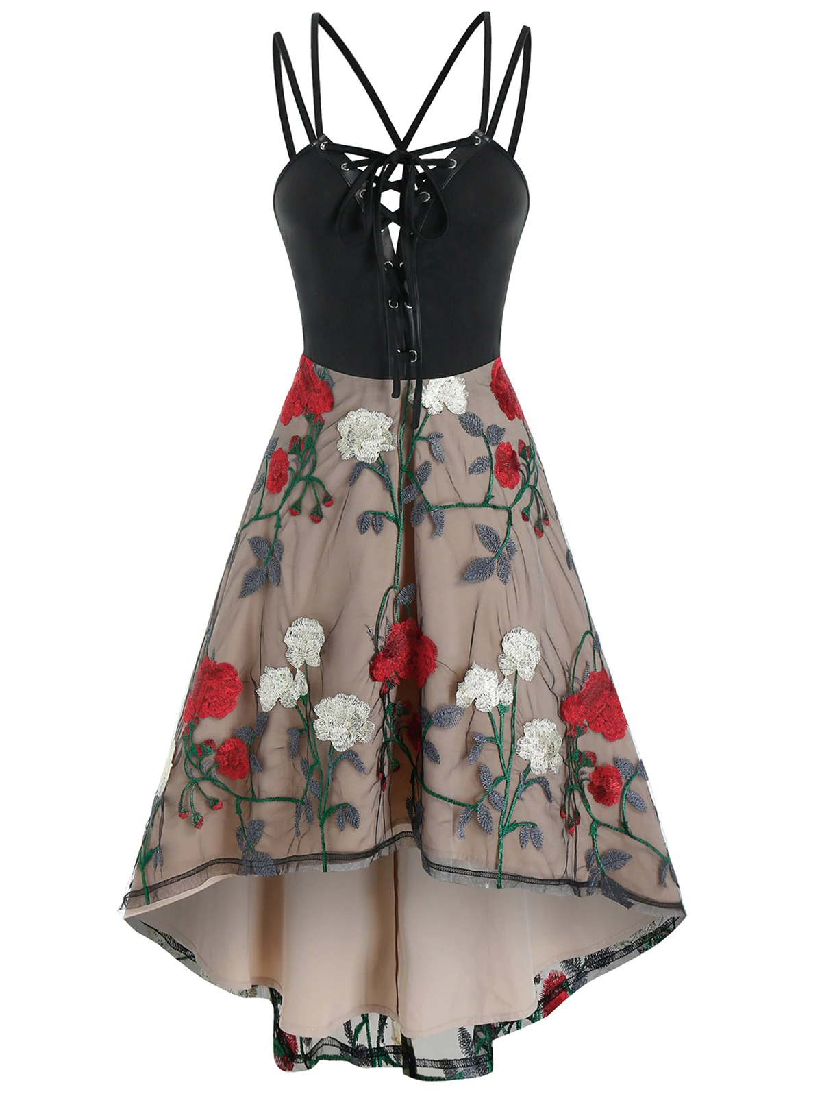 Lace Up Cami Floral Lace High Low Dress