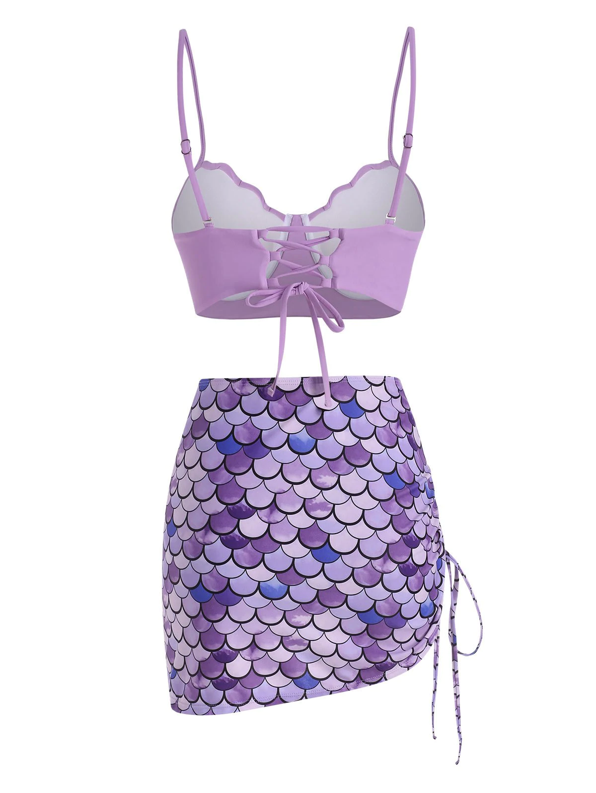 Lace-up Cinched Push Up Mermaid Three Piece Swimsuit