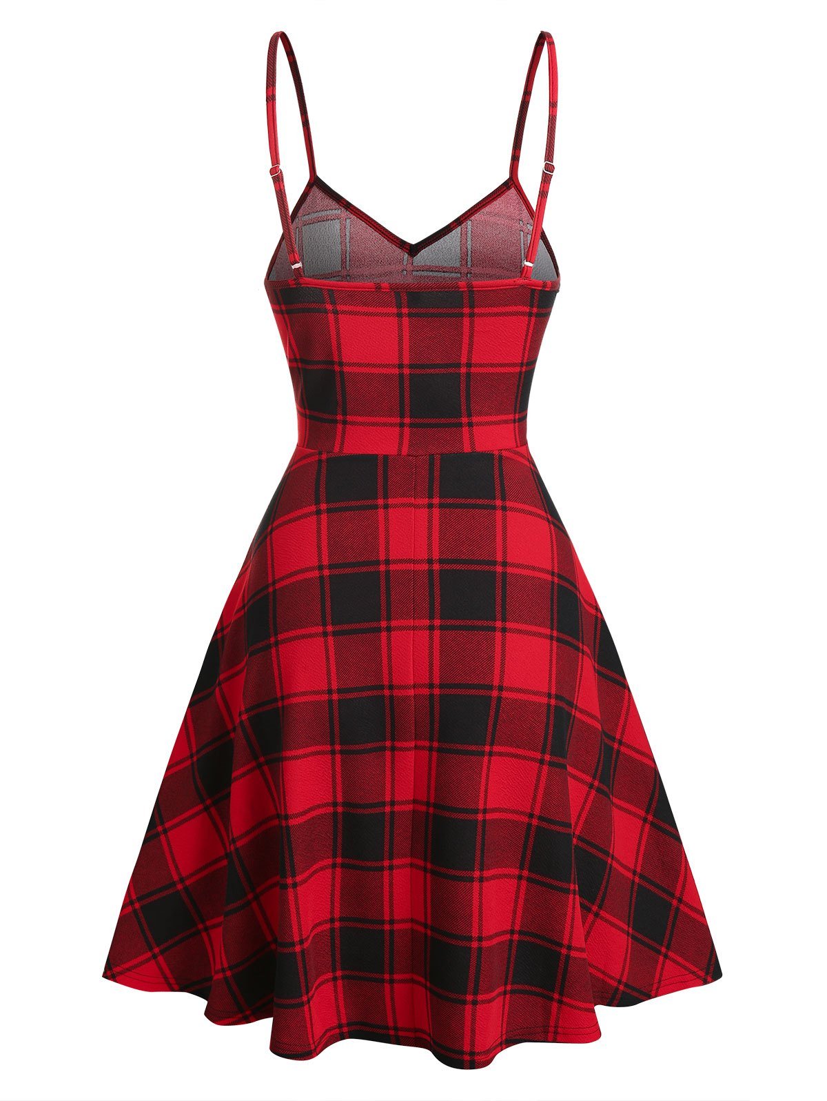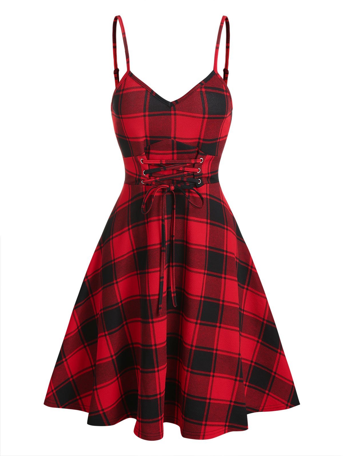 Lace Up Fit And Flare Plaid Slip Dress