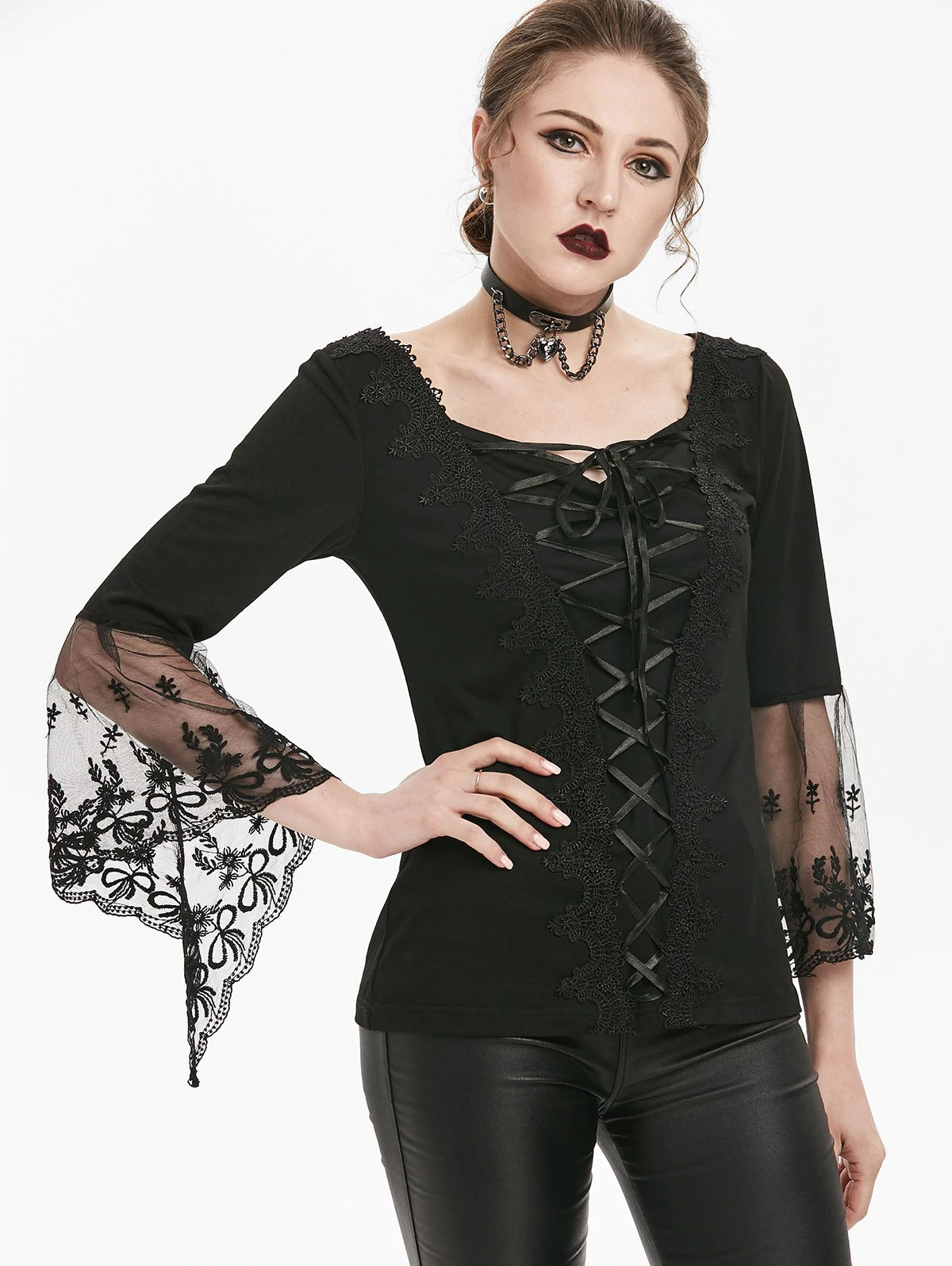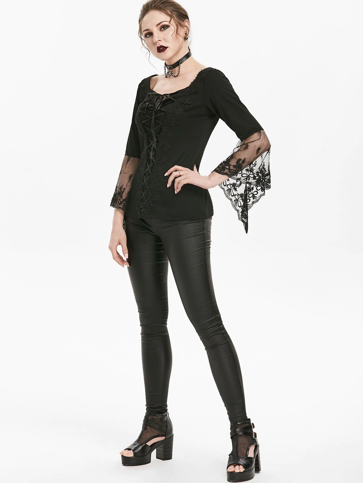 Lace Up Flare Sleeve Sweetheart T-shirt